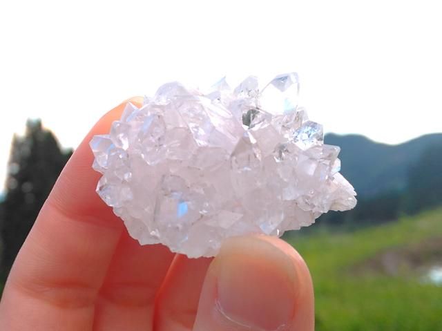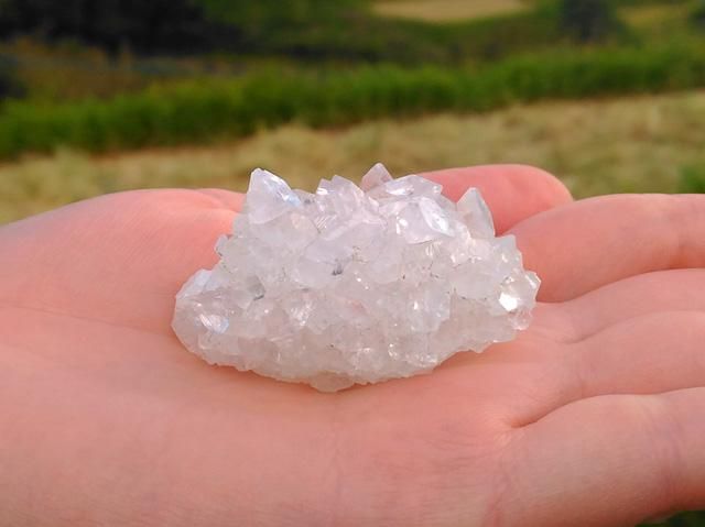 インド産のキラキラキレイな掌サイズのかわいいアポフィライト(魚岩石)です。