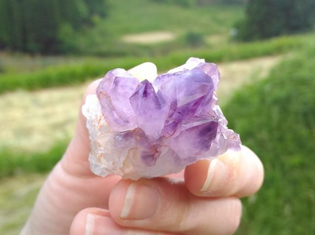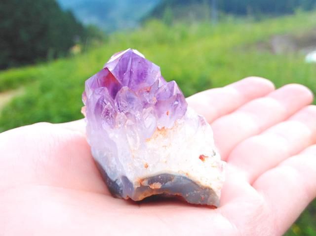 天然ナチュラルのインド産の掌サイズのかわいいアメジストクラスターです。