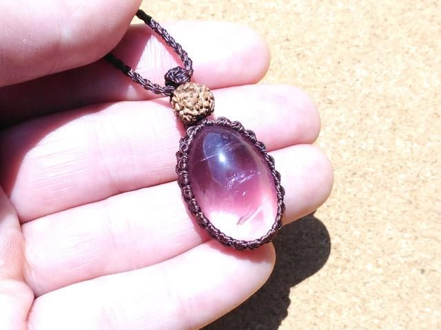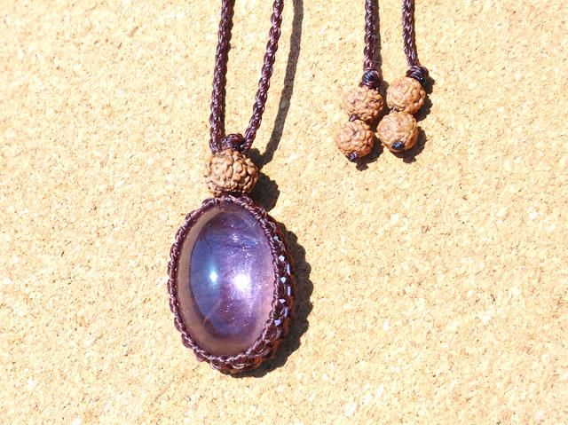 【アメジスト+ルドラクシャ(菩提樹の実)】天然石マクラメペンダント/ネックレス・第7チャクラ対応