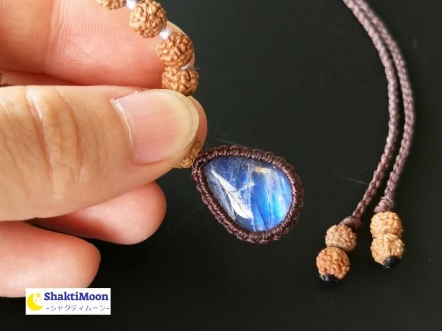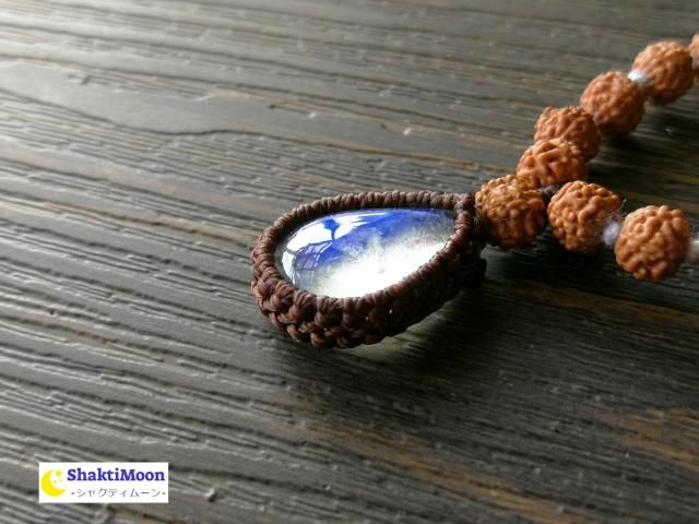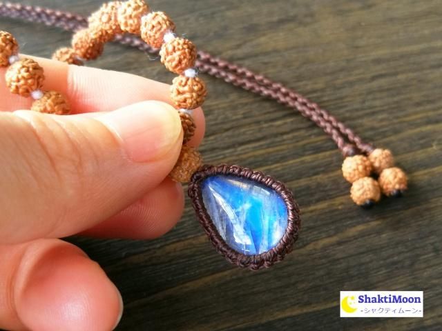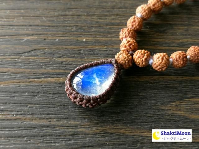 約5mmの小粒ルドラクシャと6月の誕生石でもある深いブルーのシラーがとても美しい高品質ブルームーンストーンを組み合わせました。