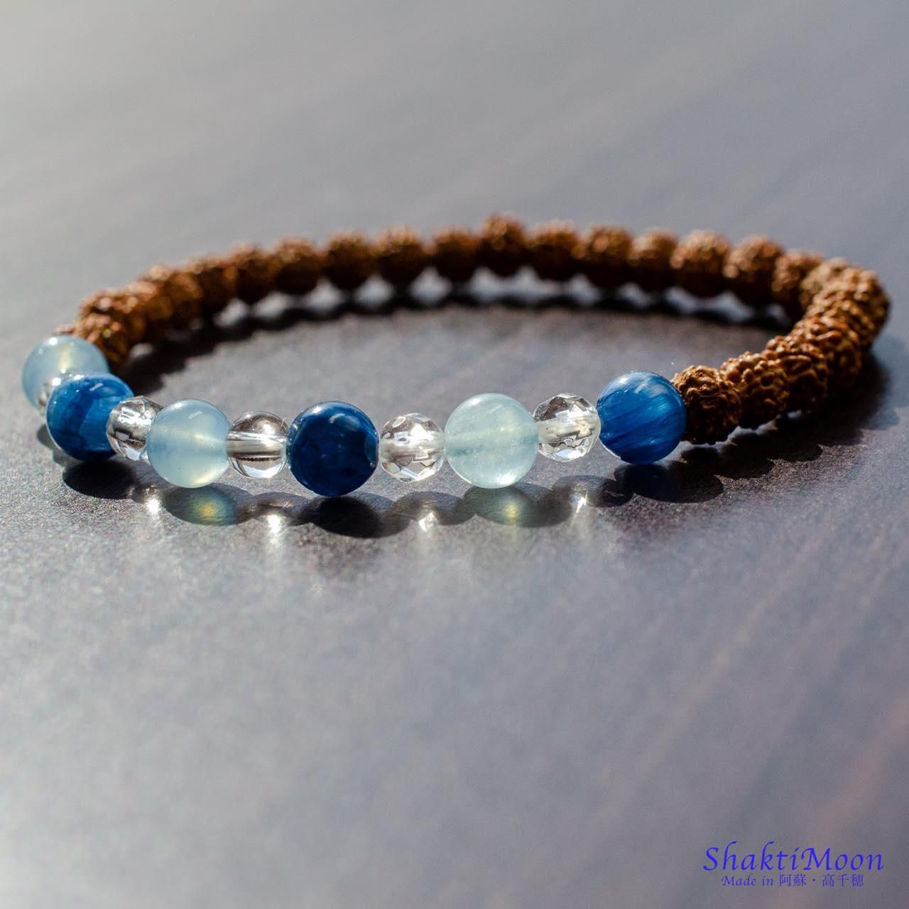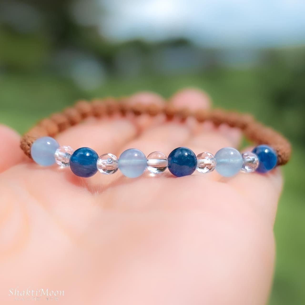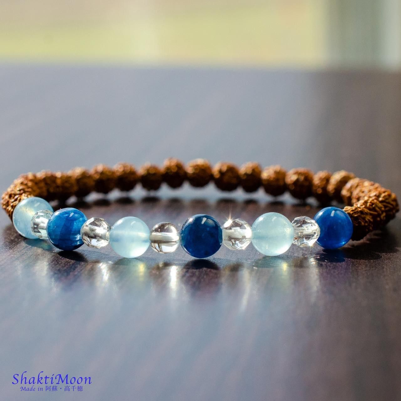 3月の誕生石アクアマリン×カイヤナイトととってもレアで貴重な小粒ルドラクシャを組み合わせました☆