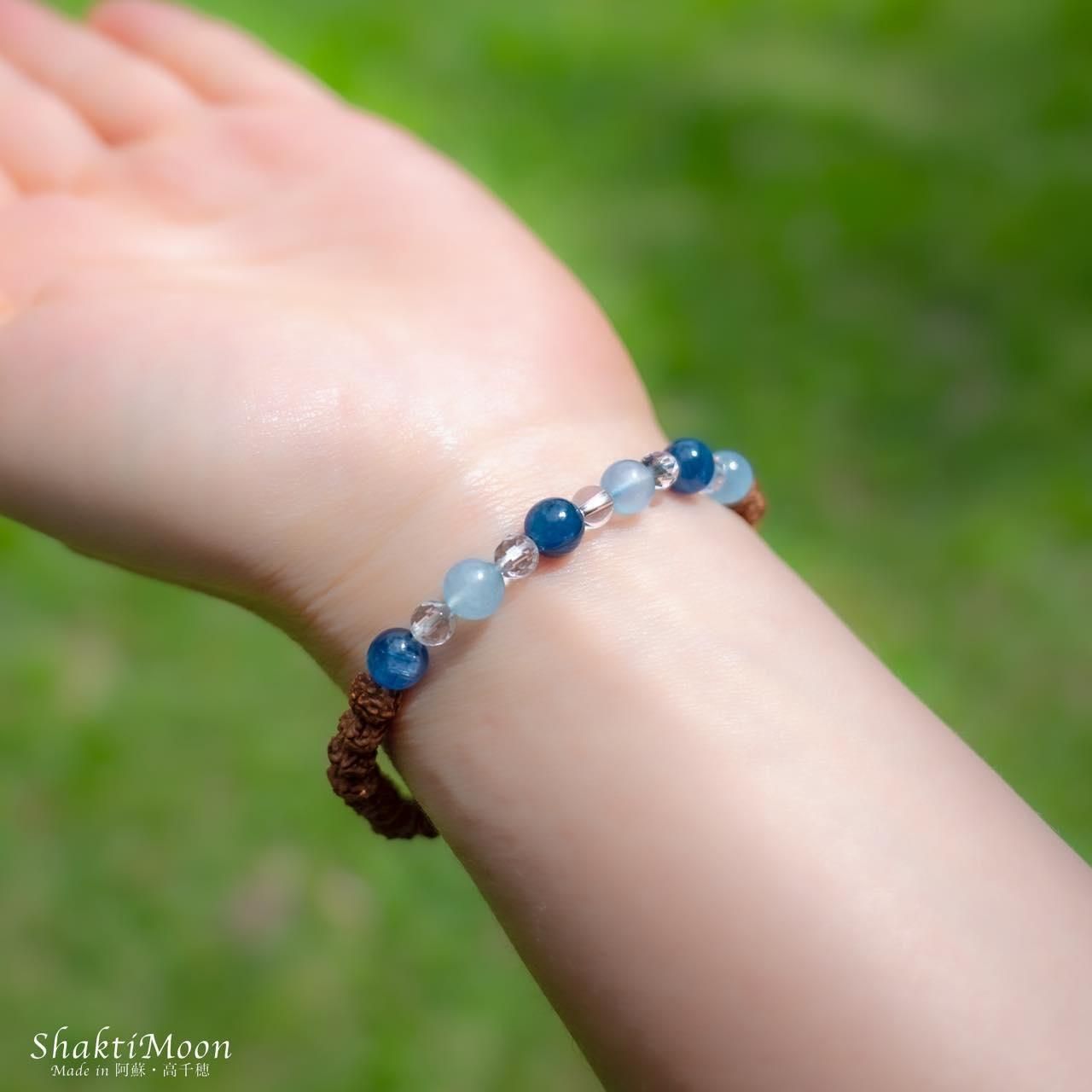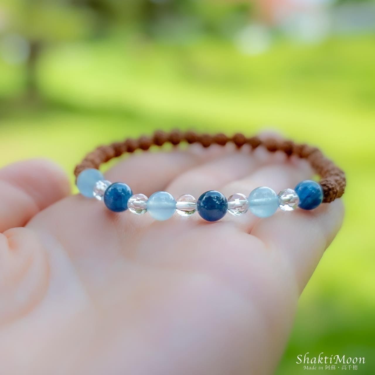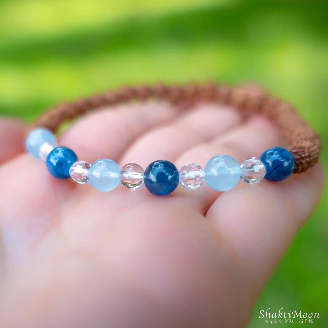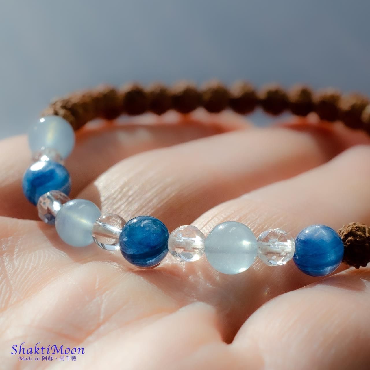 3月の誕生石アクアマリン×カイヤナイトととってもレアで貴重な小粒ルドラクシャを組み合わせました☆