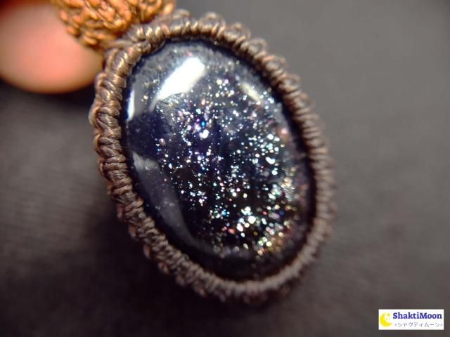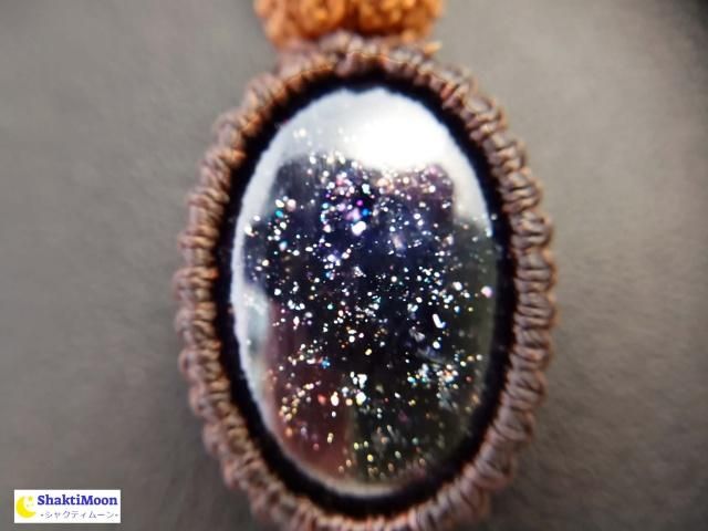 まるで宇宙の銀河のようにキラキラと虹色に輝く、アイオライトサンストーン。