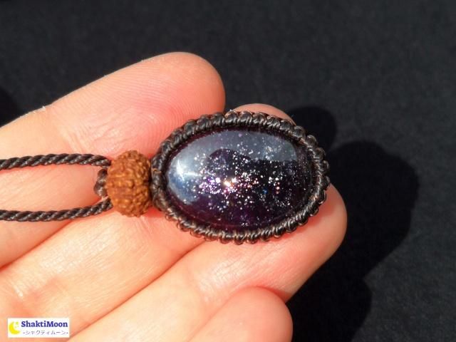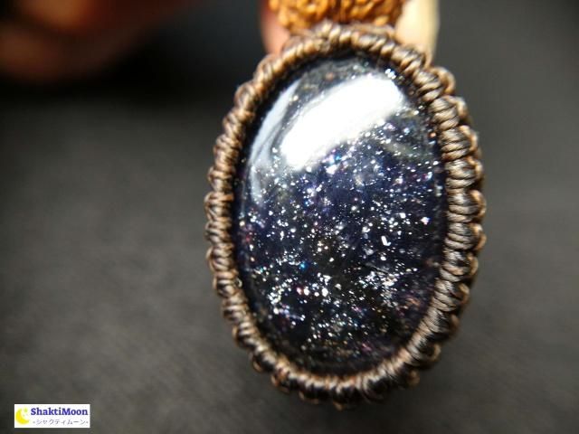 光や角度により色が変化する神秘的なアイオライトに、満点の星屑が散りばめられたかのようにキラキラとイロトリドリに輝くアベンチュレッセンスが神々しいほど美しいアイオライトサンストーンを用いました☆