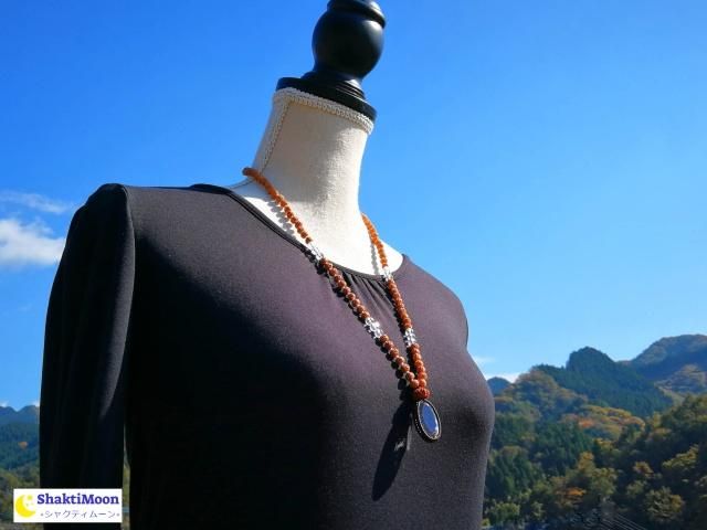 また、ルドラクシャ(菩提樹の実)は天然の木の実のため、形状やサイズに多少のばらつきがございます。