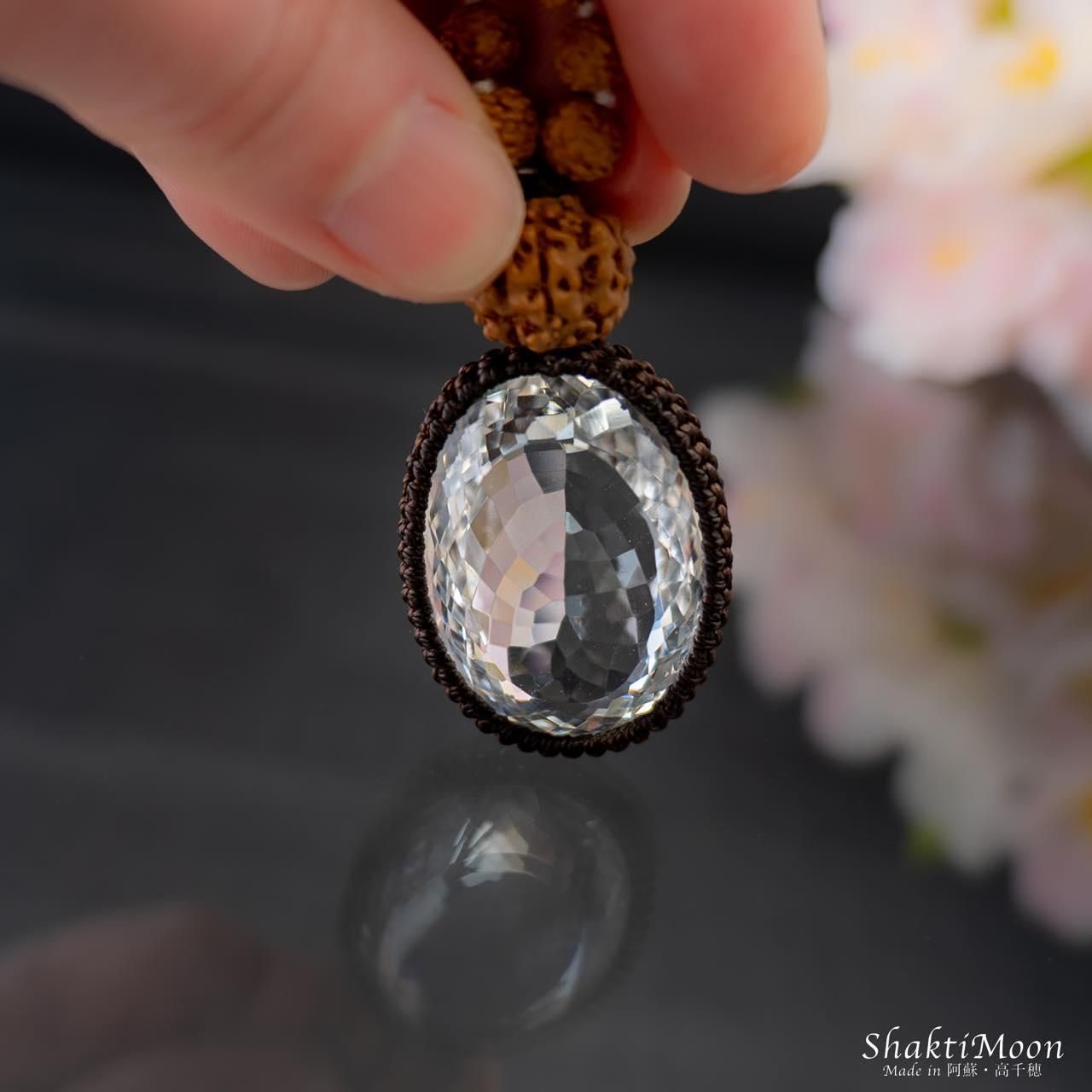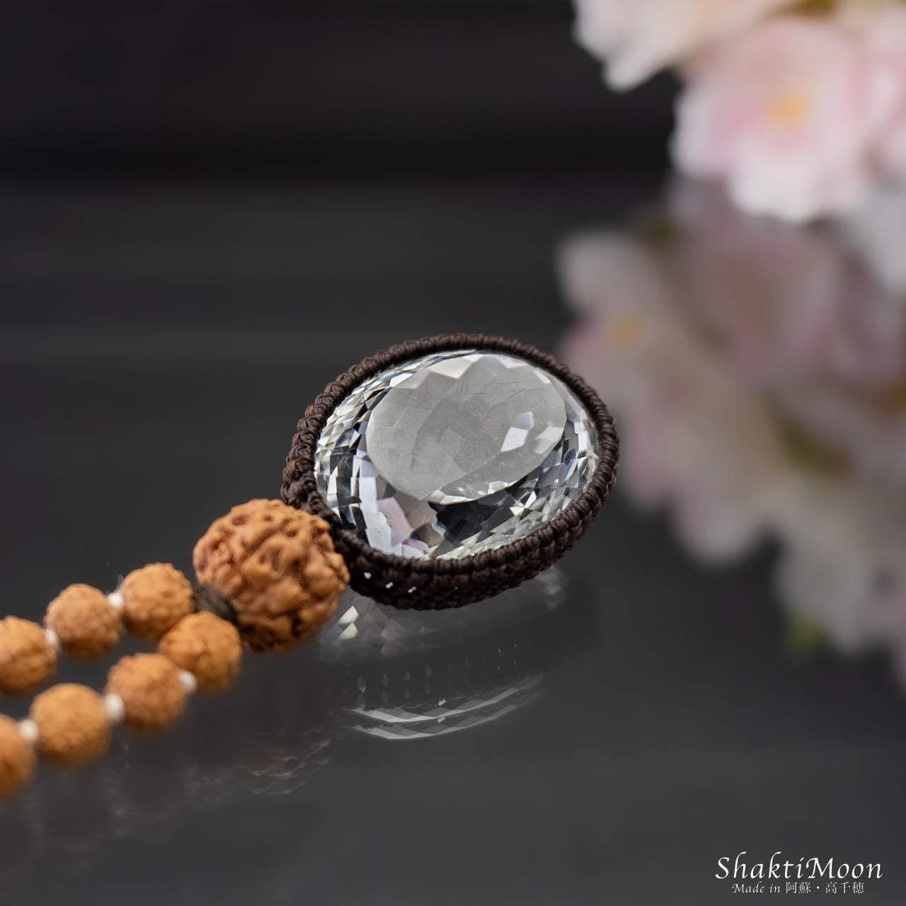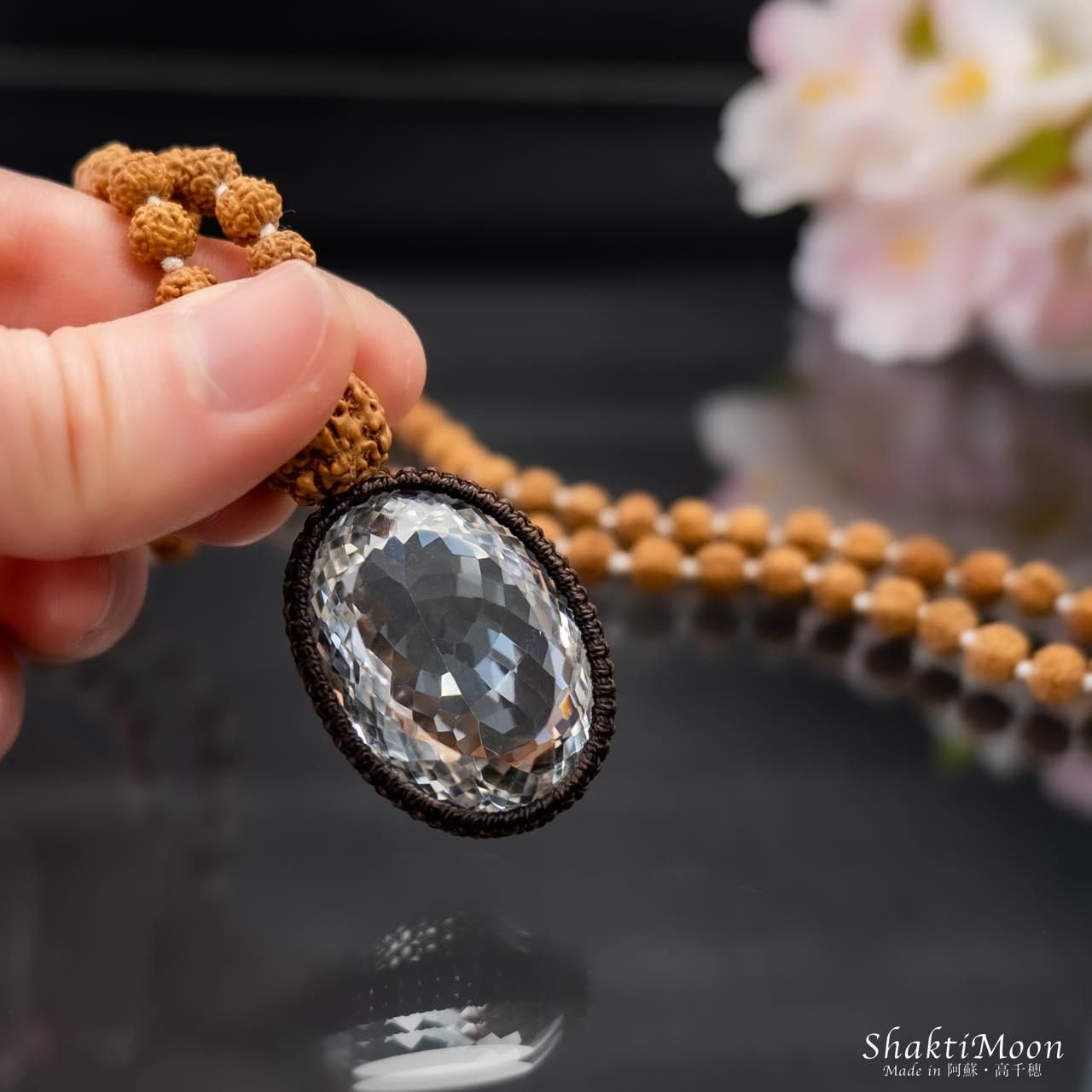 シャクティムーンで人気No1のキラキラプレミアムカット水晶のルドラクシャマーラーペンダントです!