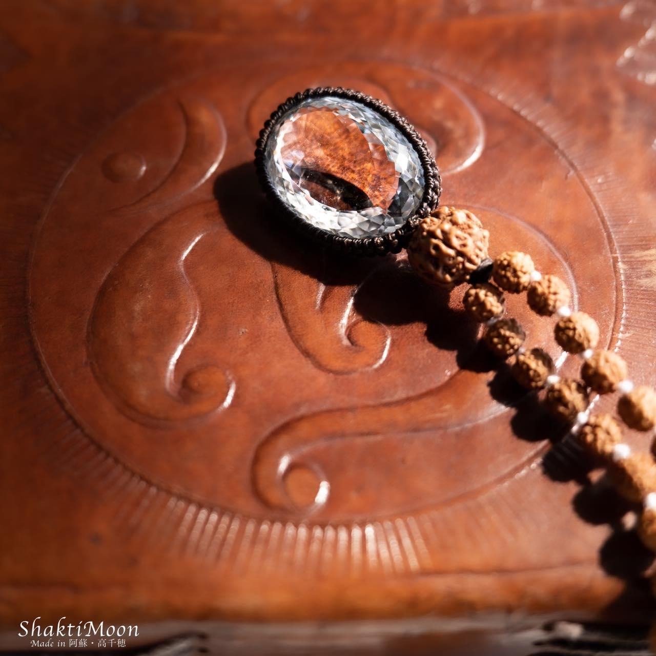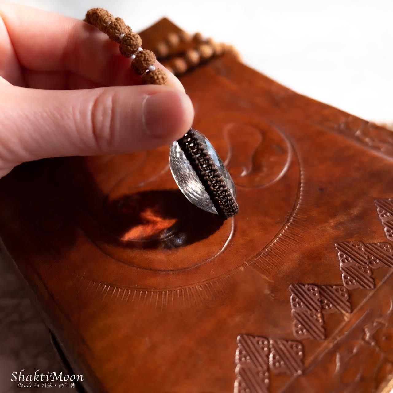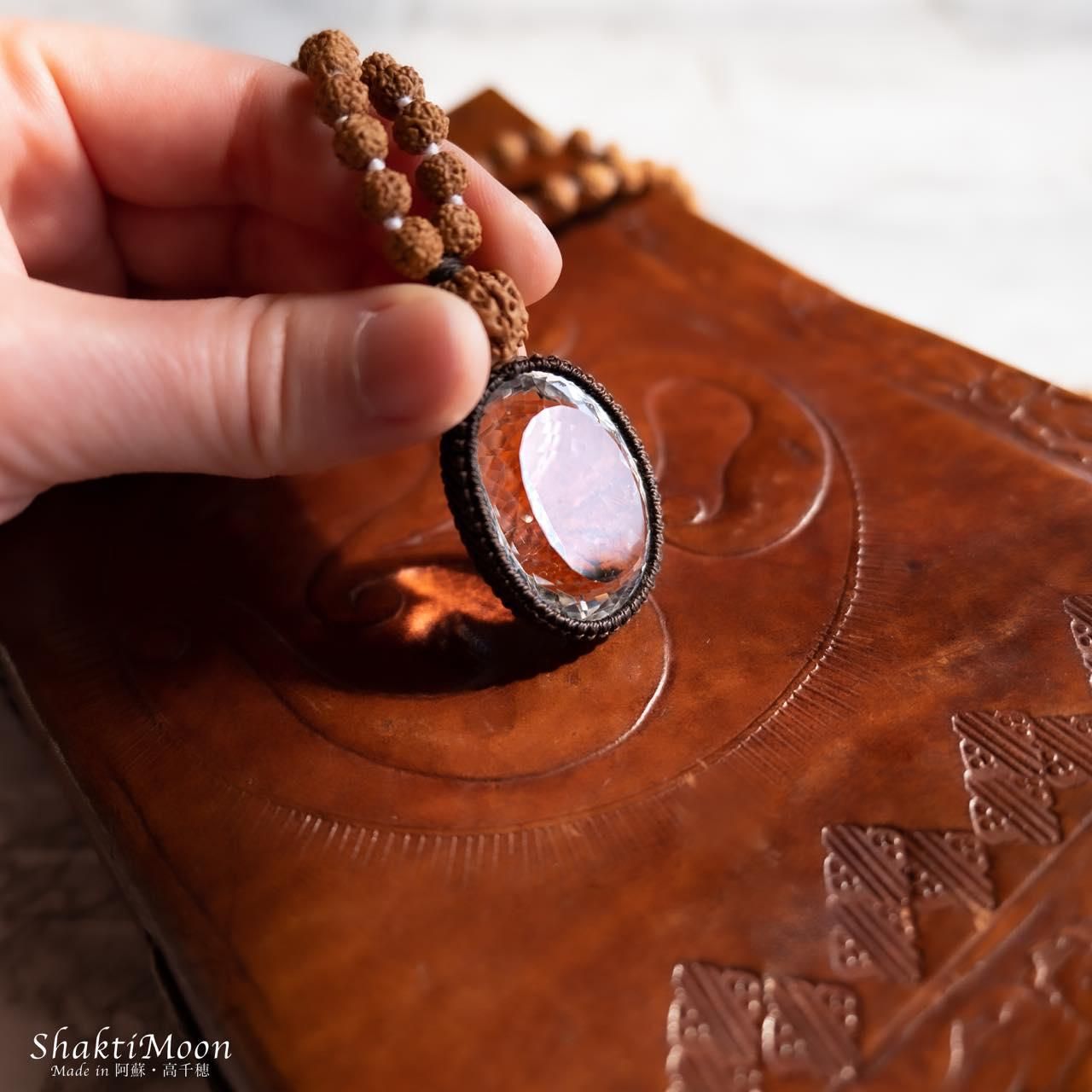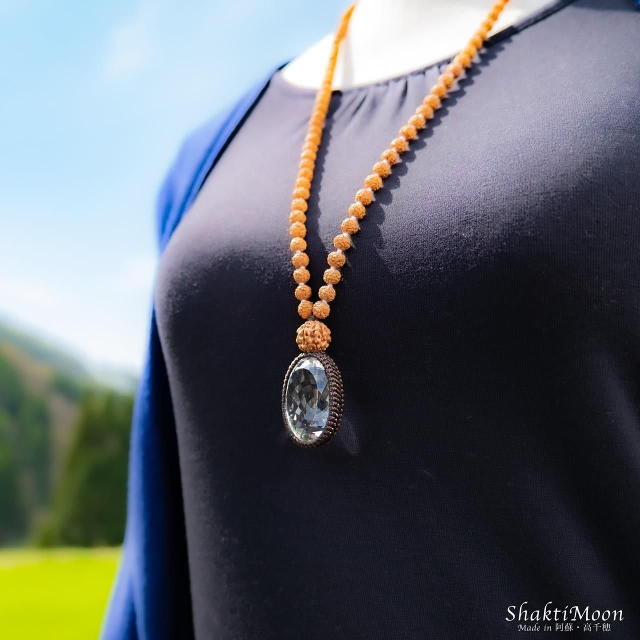 シャクティムーンで人気No1のキラキラプレミアムカット水晶のルドラクシャマーラーペンダントです!