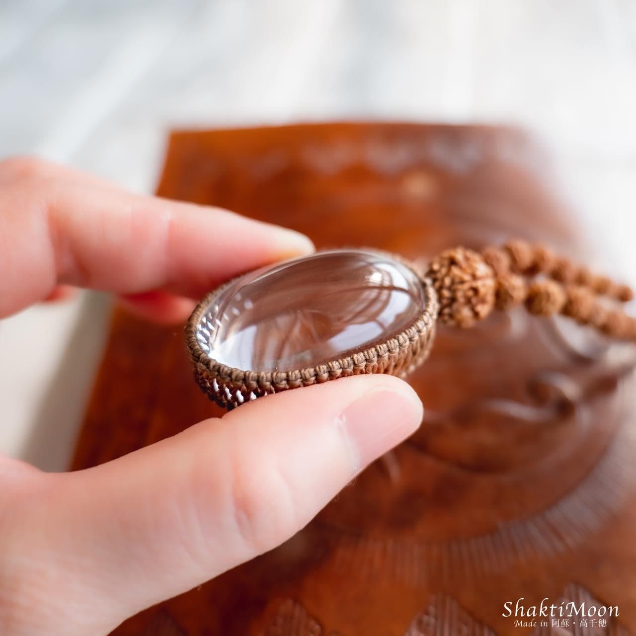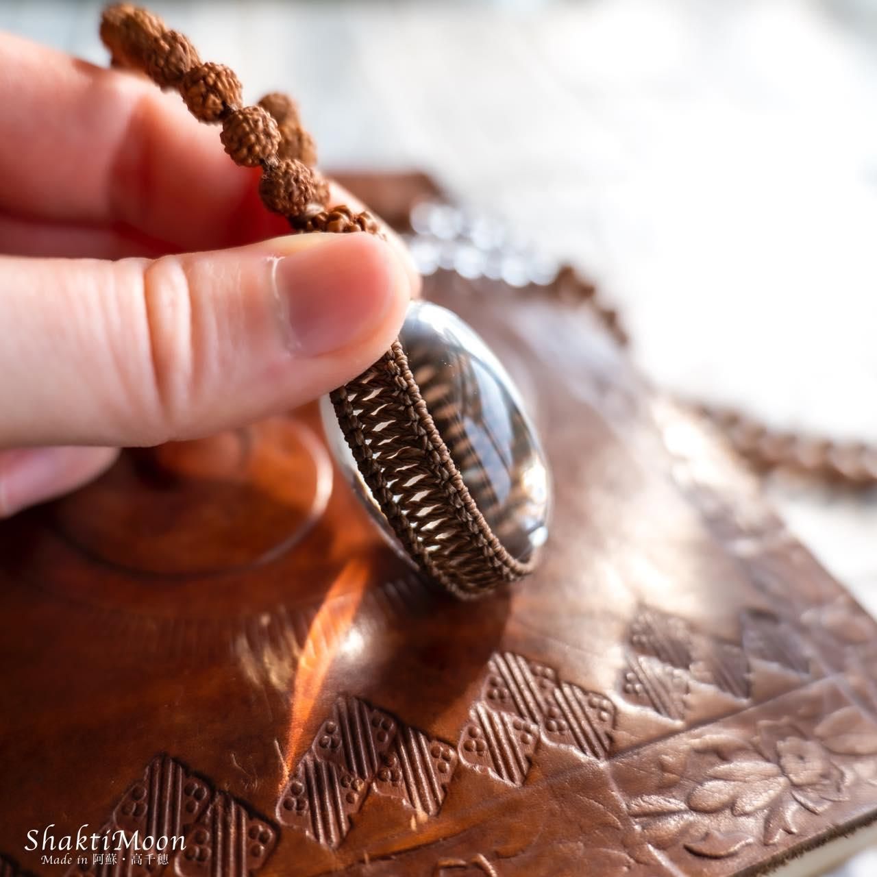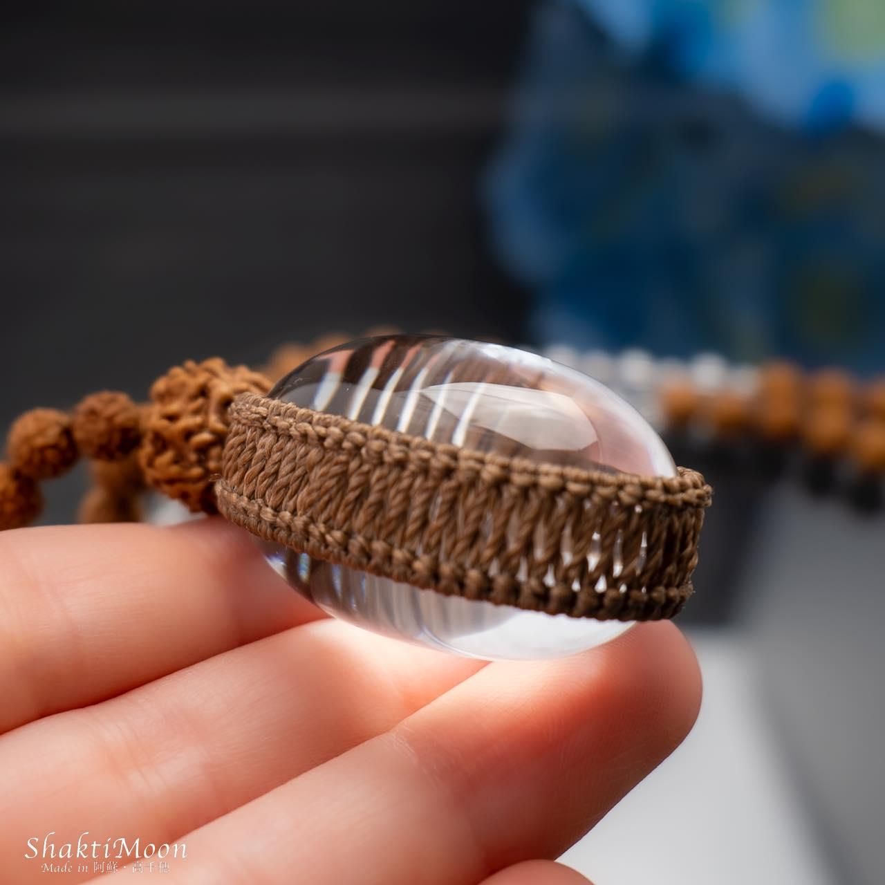 すべてが手作りで結びを大切にしているため時間と手間がかかり大量生産には向きませんが、ヒーリングや瞑想のお供として、大切なお守りとして身につけて頂きたい世界に一つだけの手作りお守りルドラクシャマーラー(水晶ビーズとあわせて108粒の数珠)です。