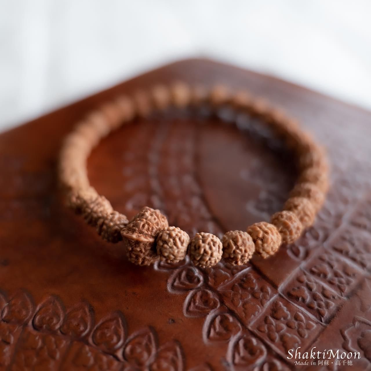 また、ルドラクシャ(菩提樹の実)は天然の木の実のため、形状やサイズに多少のばらつきがございます。