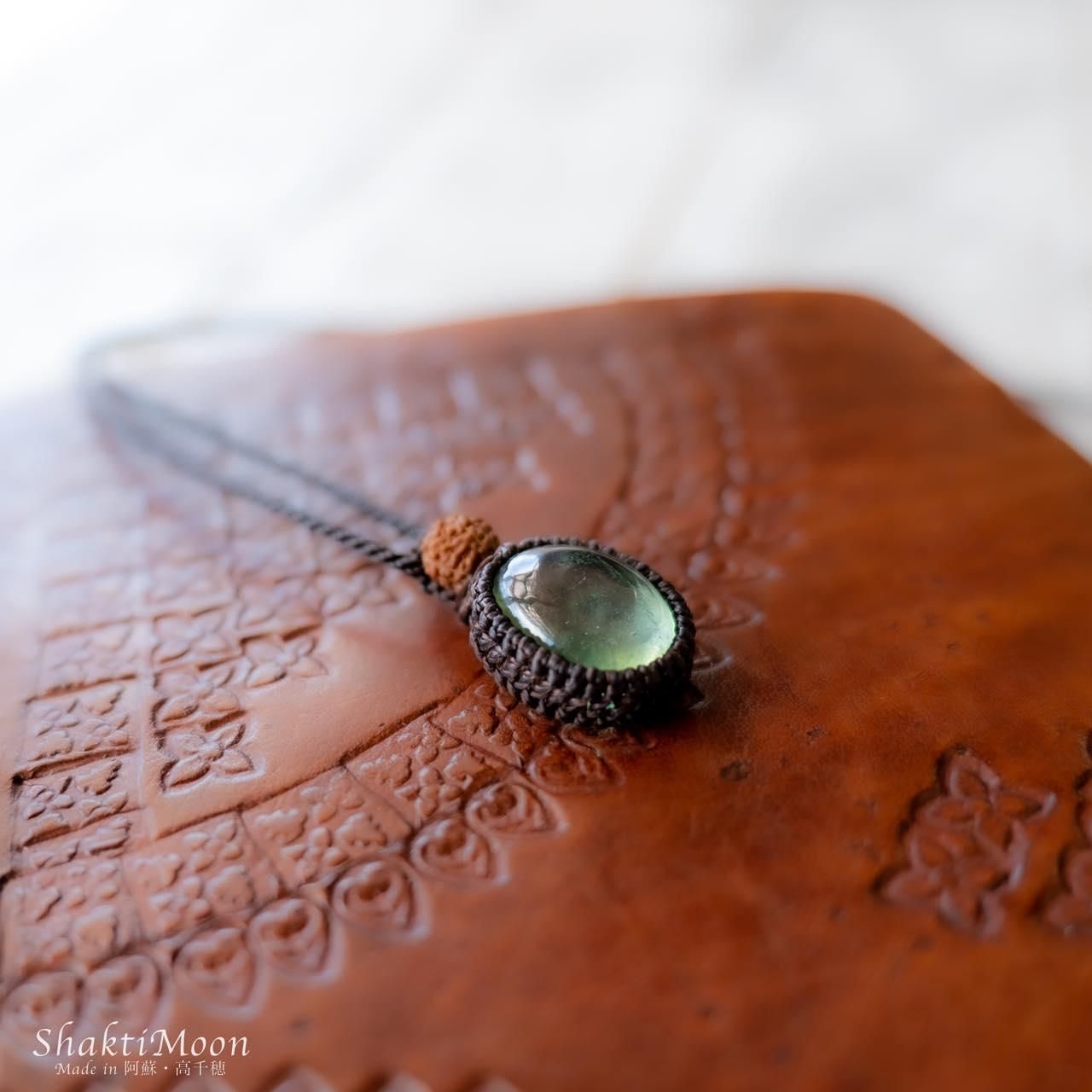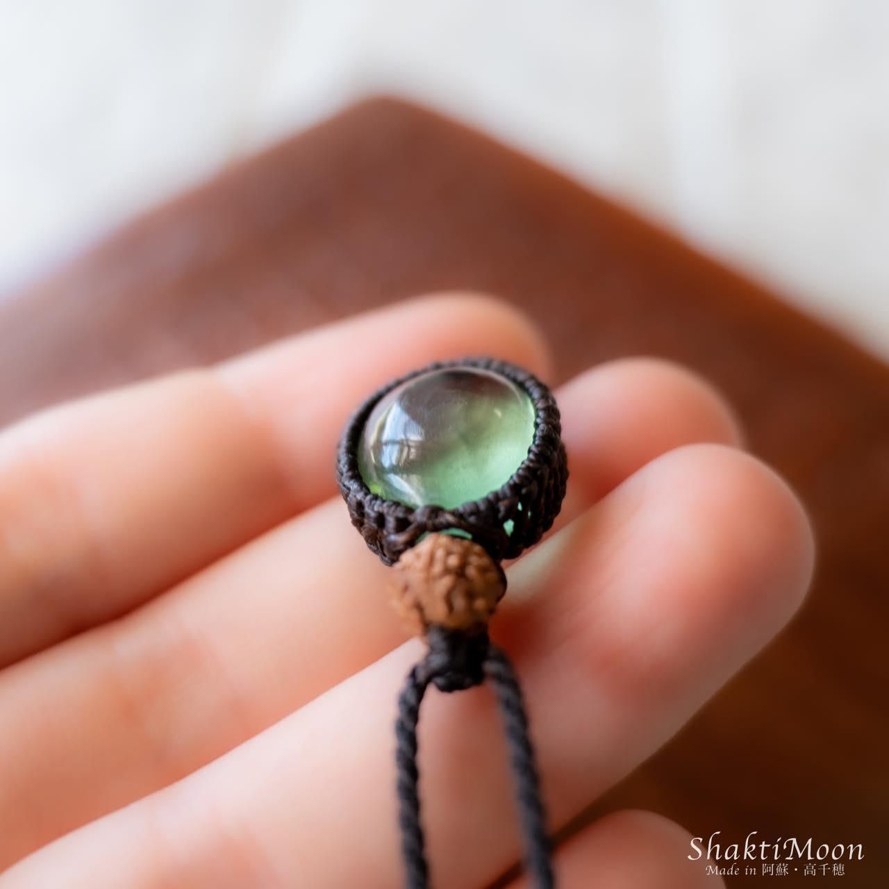 【固定観念・抑圧された感情から解放され、自由な発想力を高めたいあなたへ!グリーンフローライトとルドラクシャのお守りマクラメネックレス・チョーカー・ペンダント】第4チャクラ対応