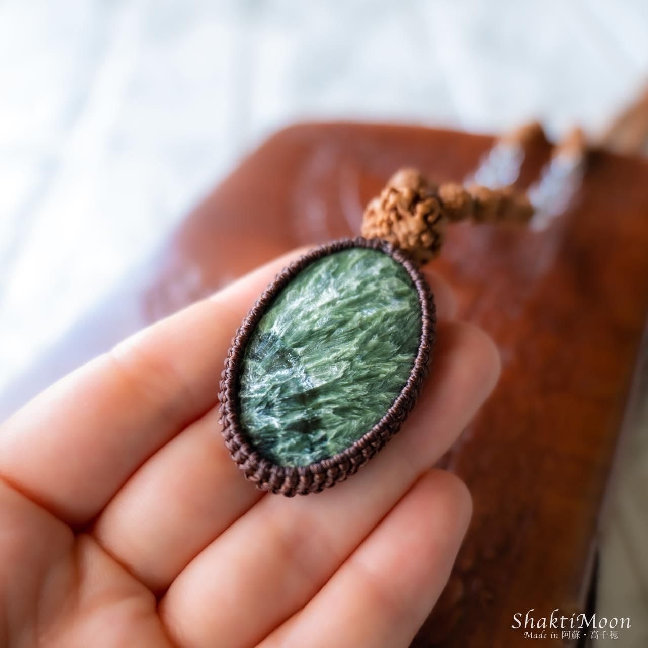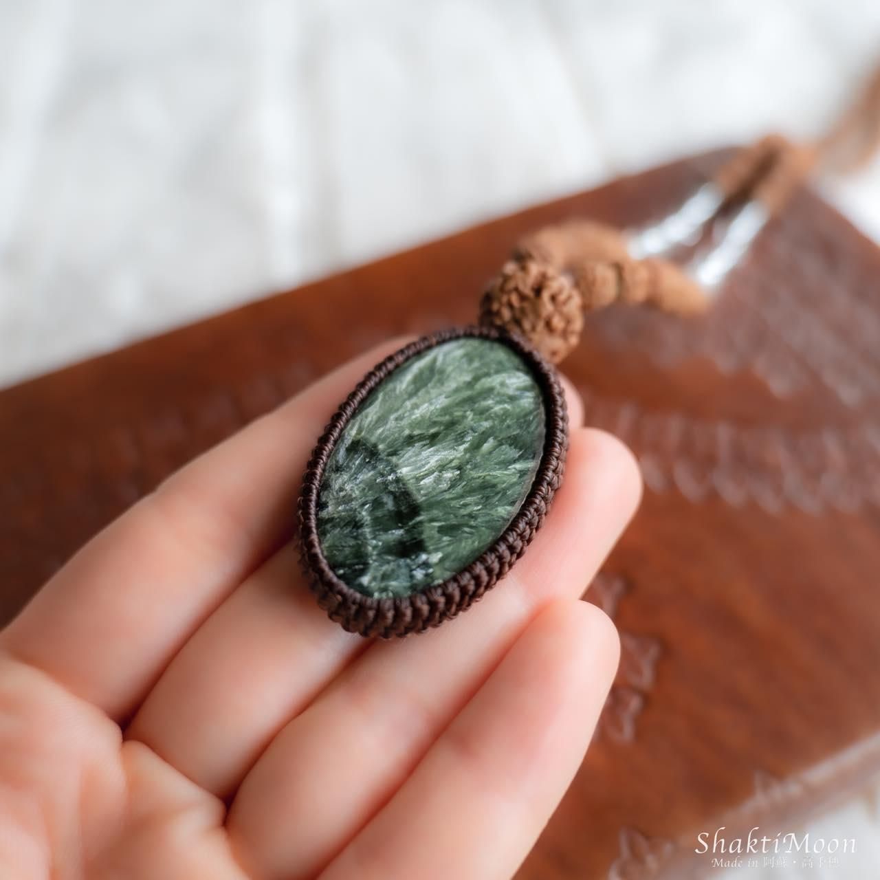 グリーンにまるで天使の羽の様なシルバーの錦糸光沢がみられることから「最高位の天使・セラフィム」に由来しセラフィナイトと呼ばれています。
