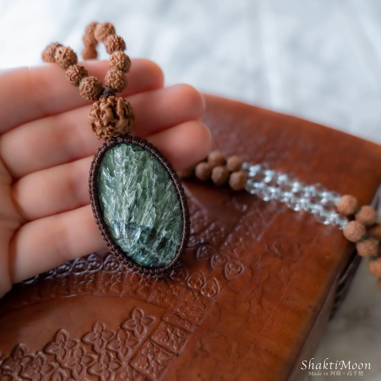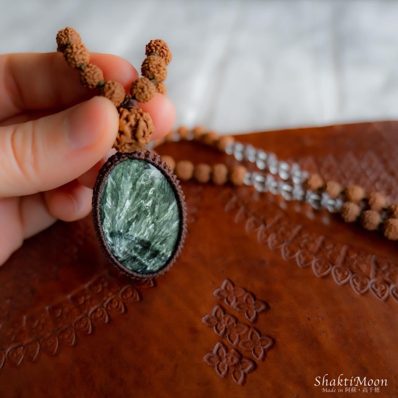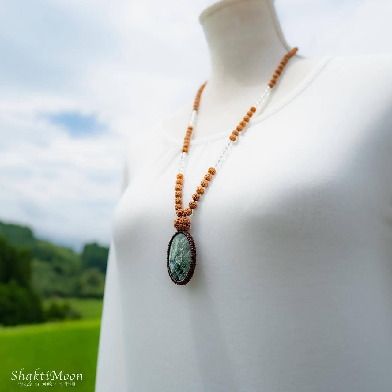 素材:ルドラクシャ(菩提樹の実)・セラフィナイト・水晶ビーズ