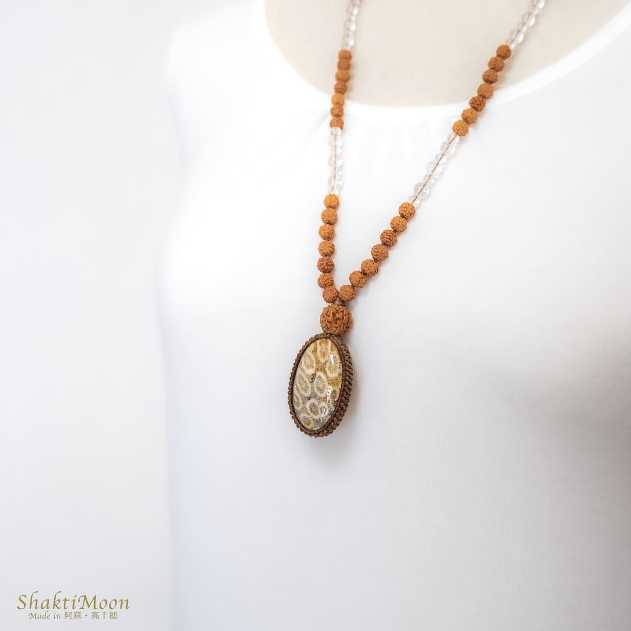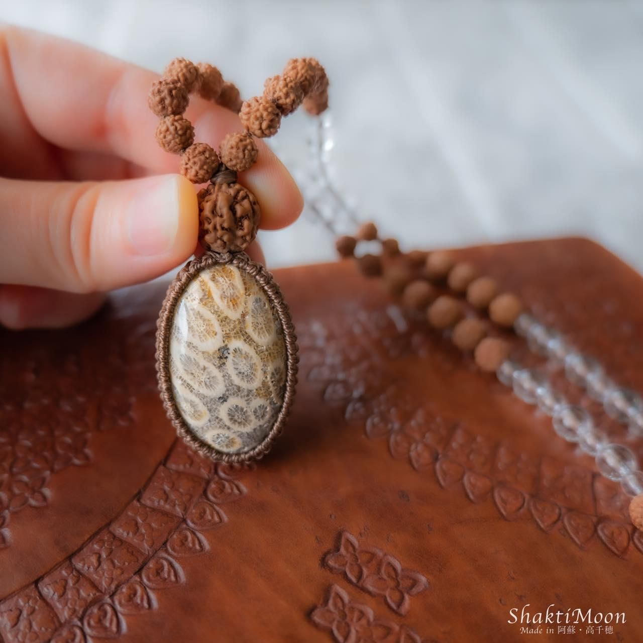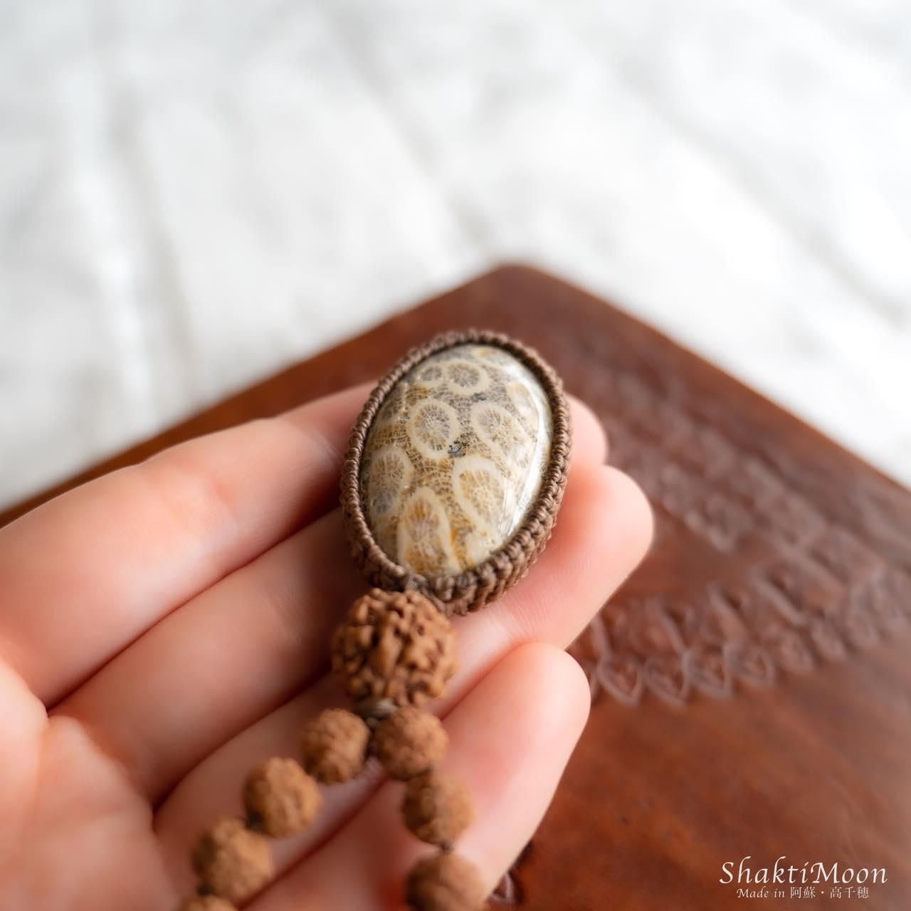 素材:ルドラクシャ(菩提樹の実)・フォッシルコーラル(化石珊瑚)