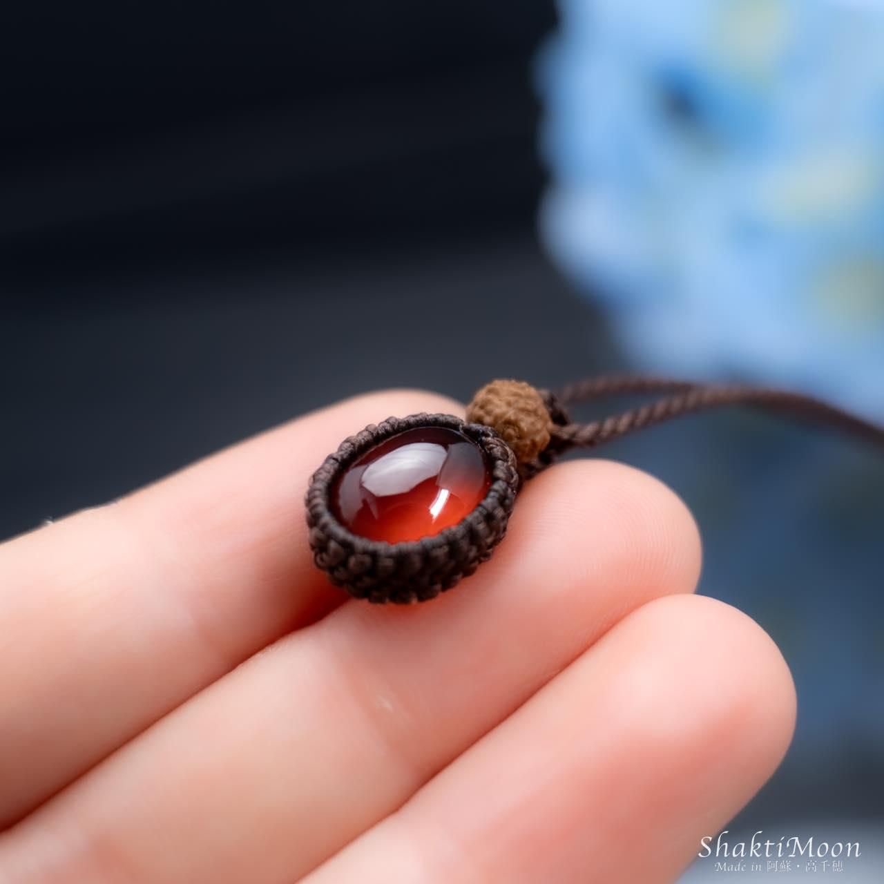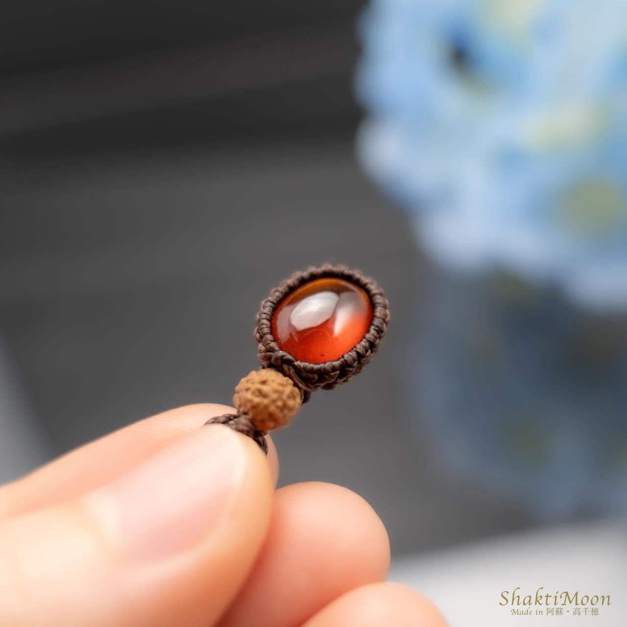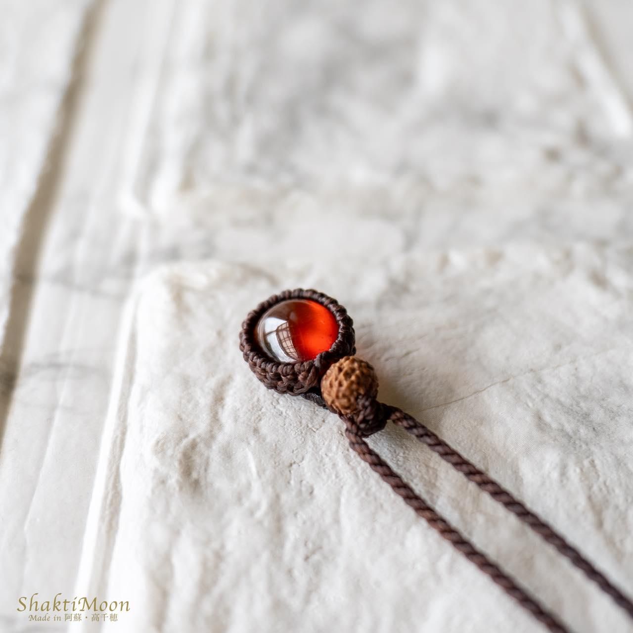 ガーネットの上にルドラクシャをひと粒組み合わせ、後ろからも持ち主様をお守りしてくれるように紐のエンド部分にも2粒ずつルドラクシャをお付けいたしました!