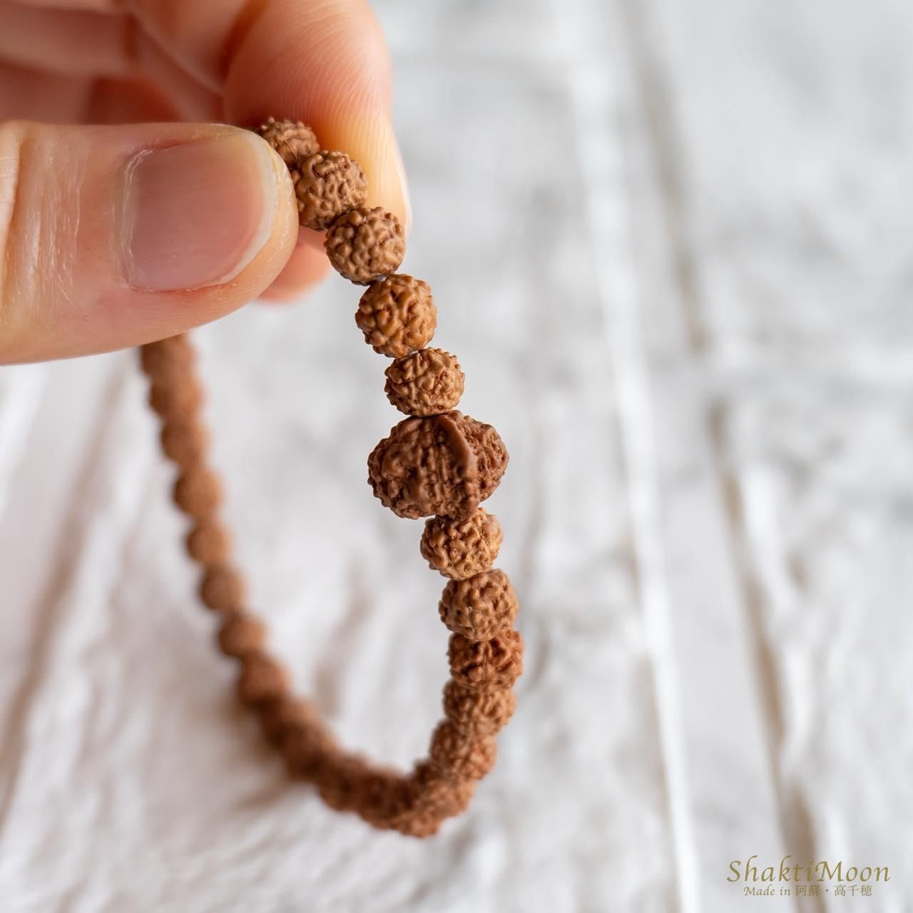 また、ルドラクシャ(菩提樹の実)は天然の木の実のため、形状やサイズに多少のばらつきがございます。