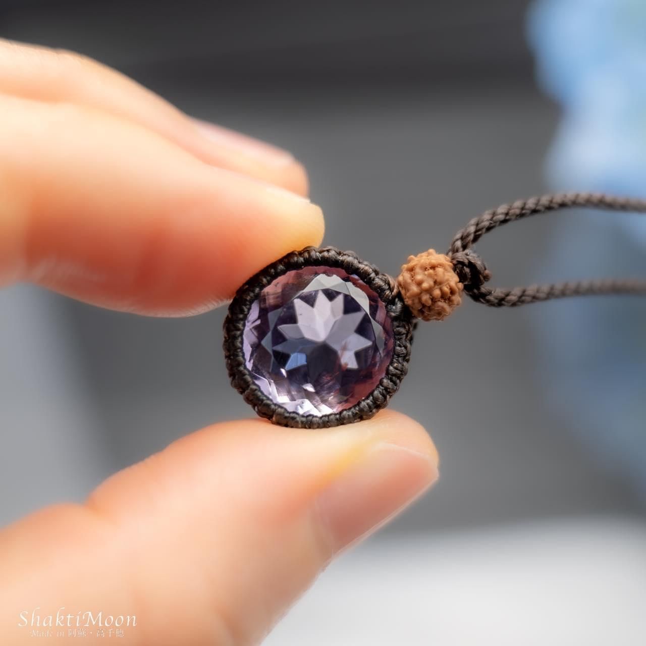 スピリチュアルなパワーが強く精神を安定させ心配事・不安・ストレスを取り除くと言われているアメジストの上にルドラクシャをひと粒組み合わせ、