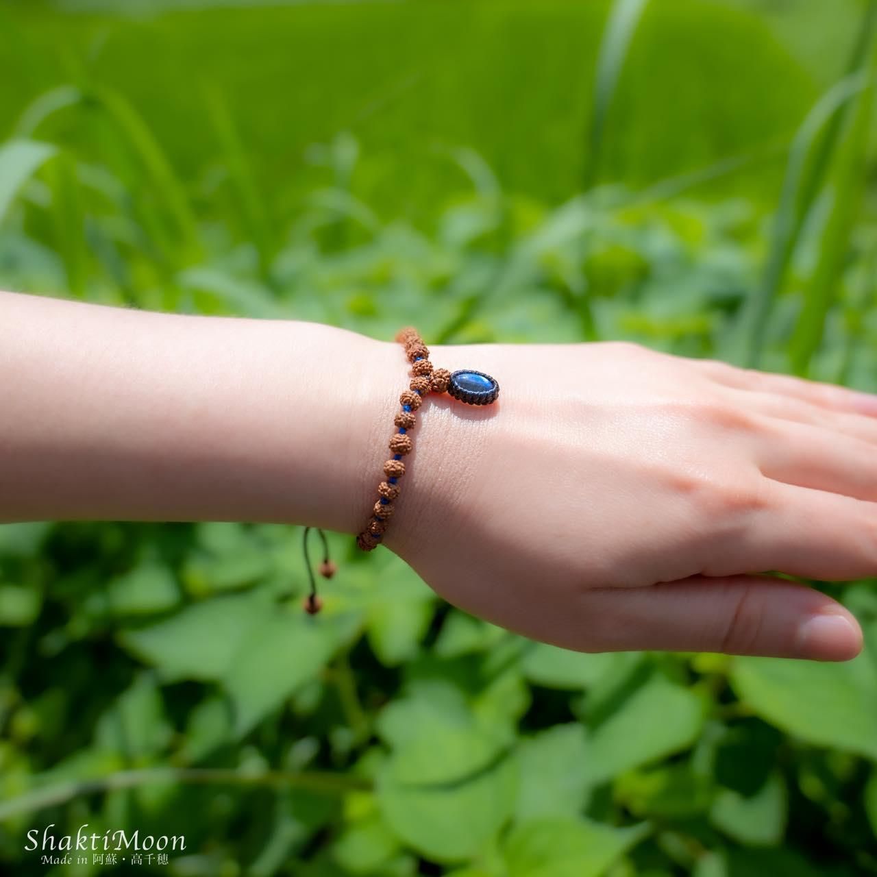 目に入る度につい眺めてしまう表面もつやつやうるうるの高品質ラブラドライトのひと雫ルドラクシャブレスレット。