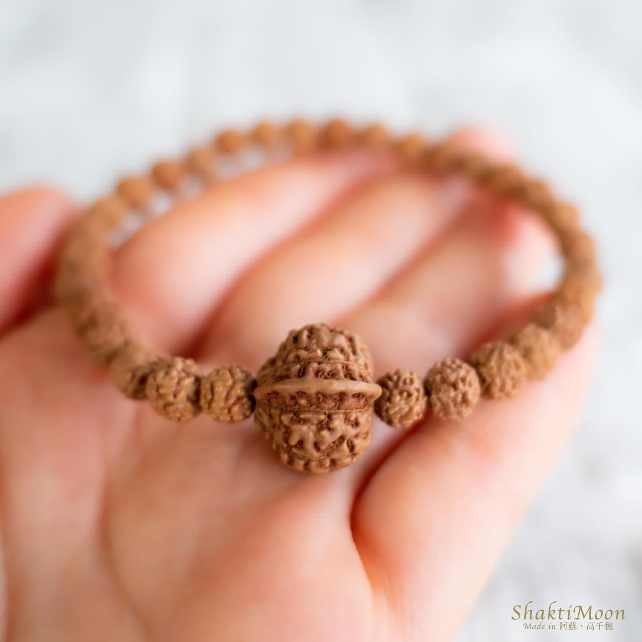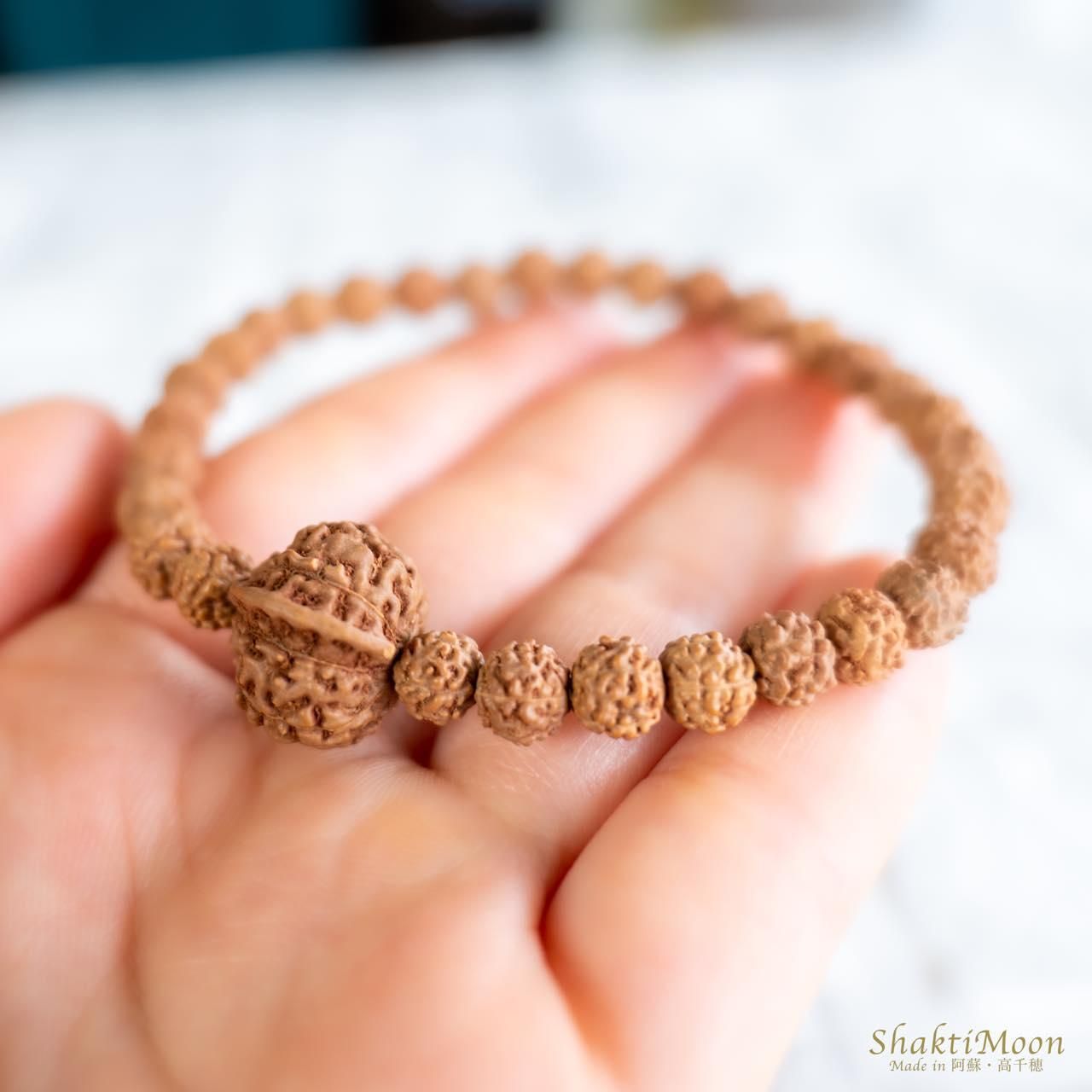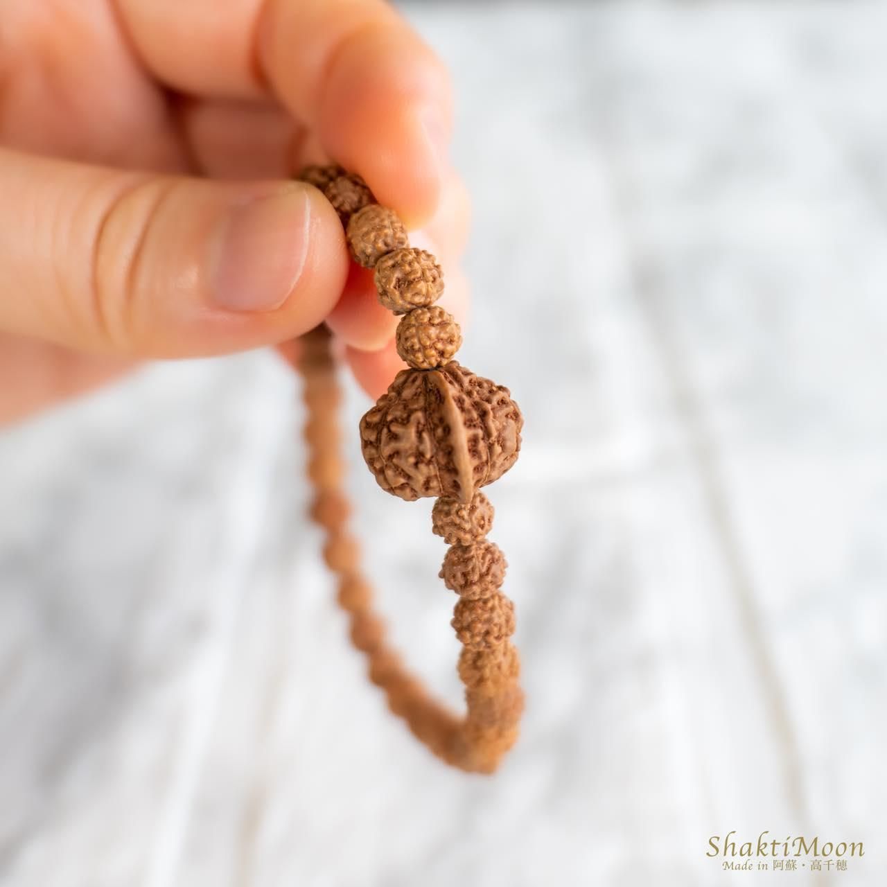 また、ルドラクシャ(菩提樹の実)は天然の木の実のため、形状やサイズに多少のばらつきがございます。