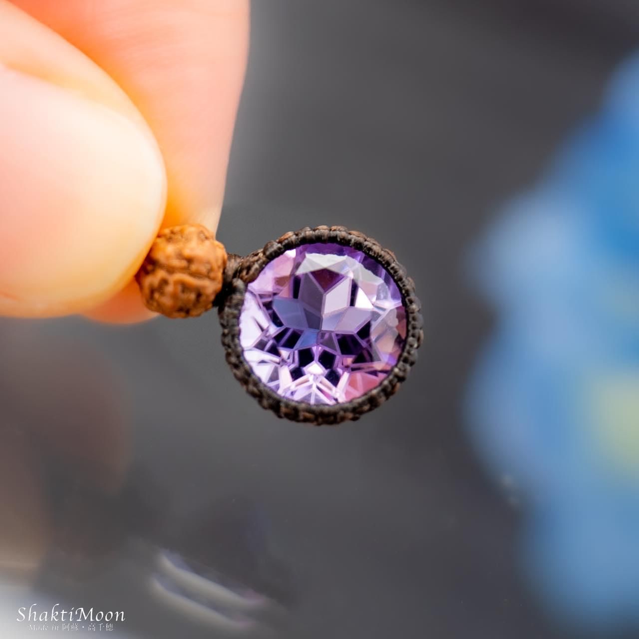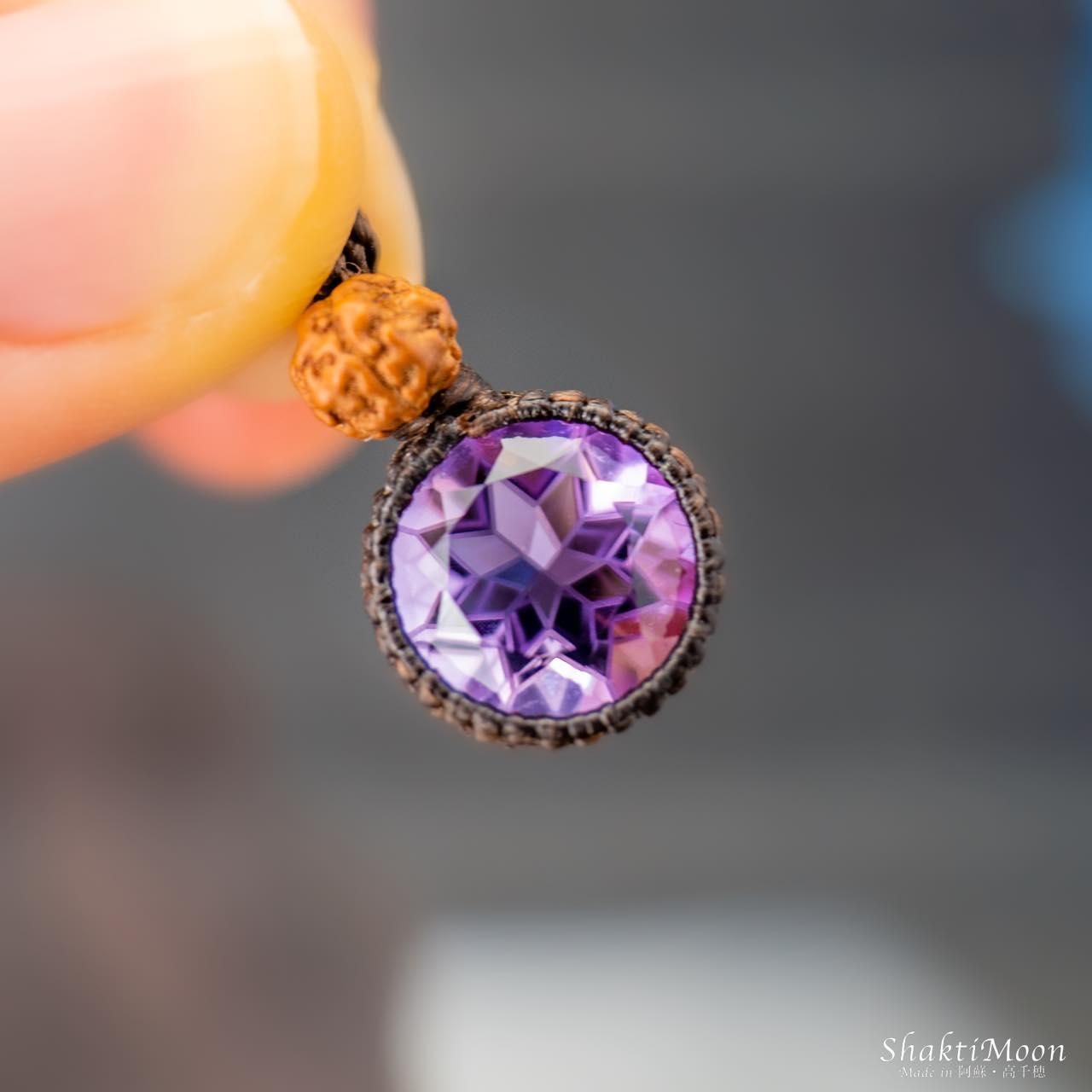 スピリチュアルなパワーが強く精神を安定させ心配事・不安・ストレスを取り除くと言われているアメジストの上にルドラクシャをひと粒組み合わせ、
