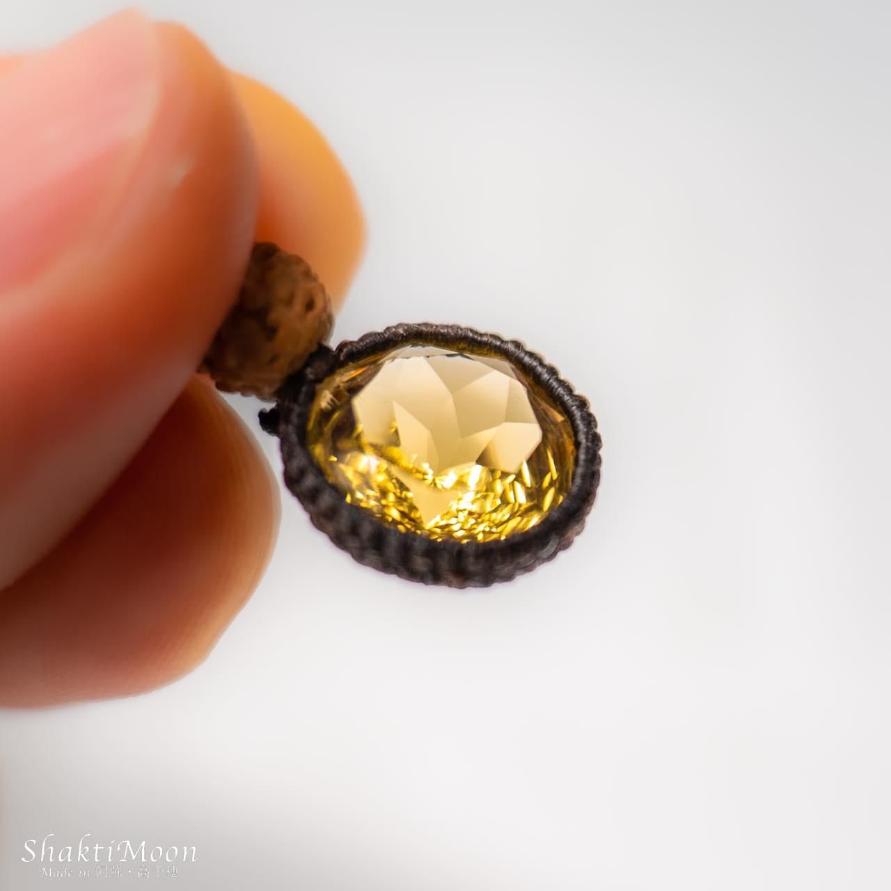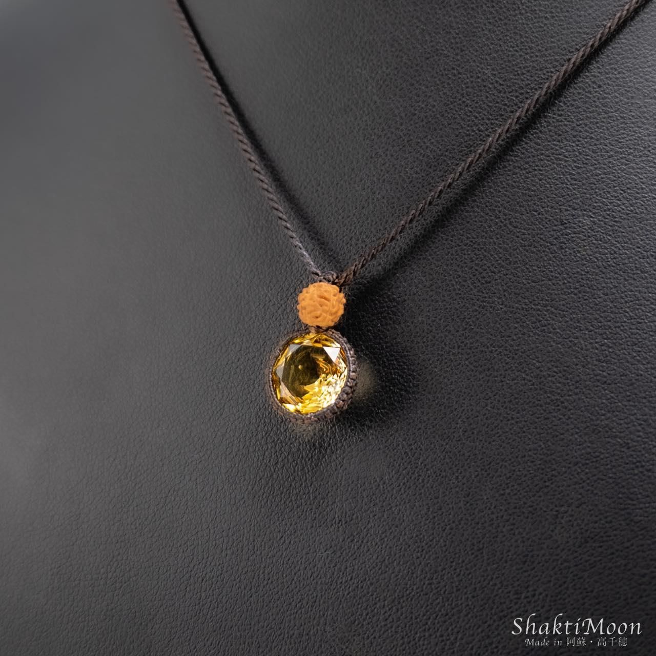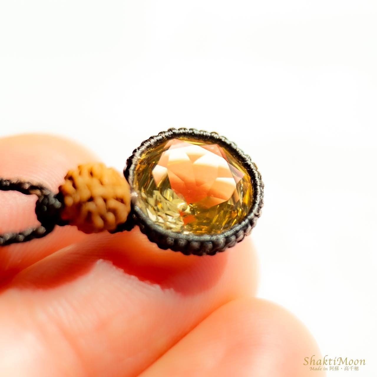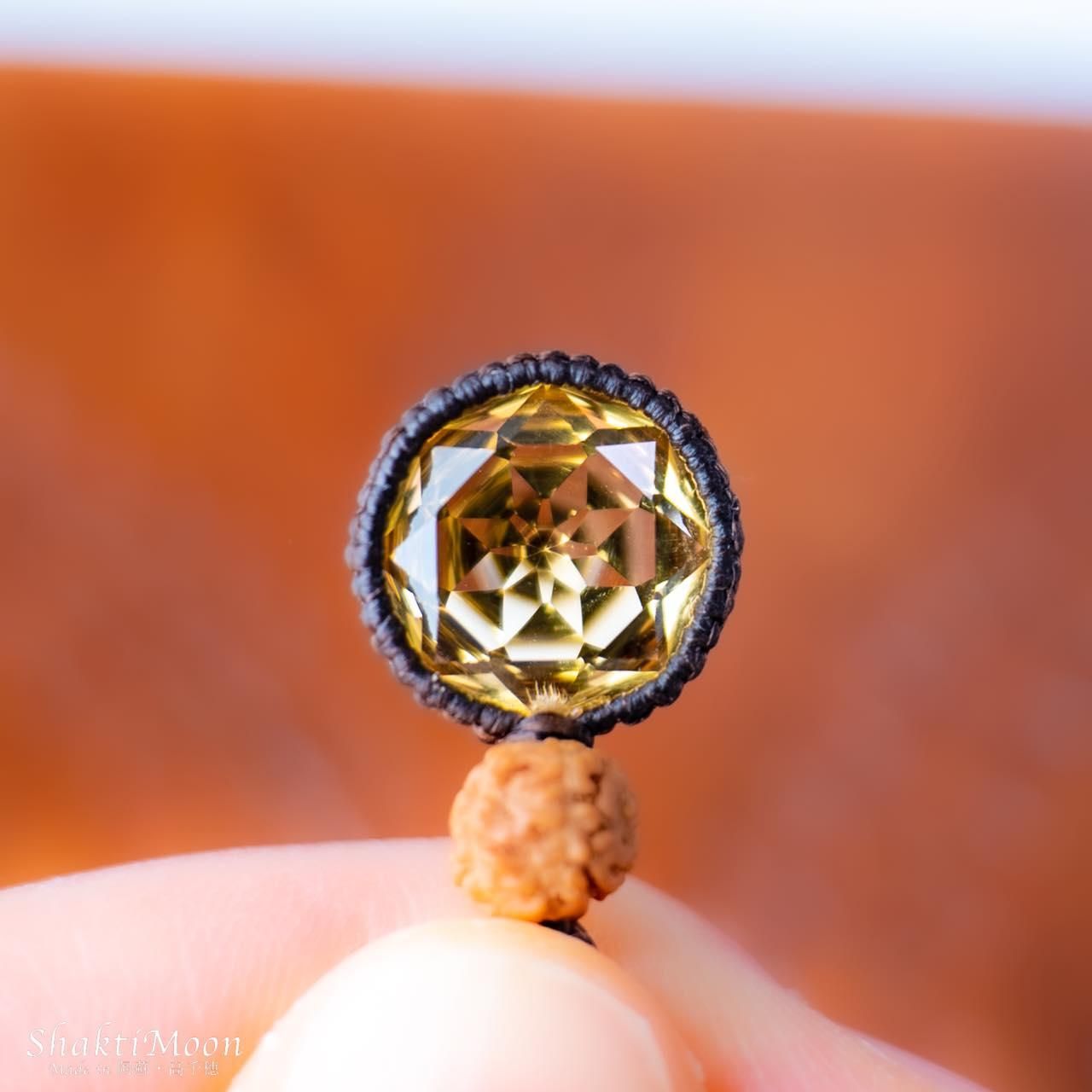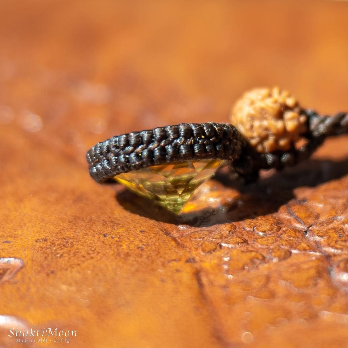 シトリンの上にルドラクシャをひと粒組み合わせ、後ろからも持ち主様をお守りしてくれるように紐のエンド部分に2粒ずつルドラクシャをお付けいたしました!
