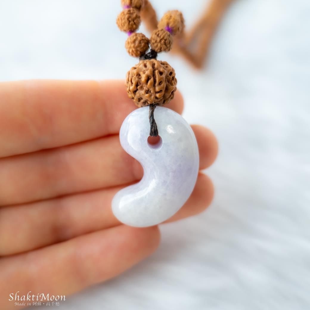 古来より世界各地で「魔法の石」「奇跡の石」として崇められ、魔除けやお守りとして愛されてきたラベンダー翡翠の勾玉と神聖なルドラクシャを組み合わせました☆