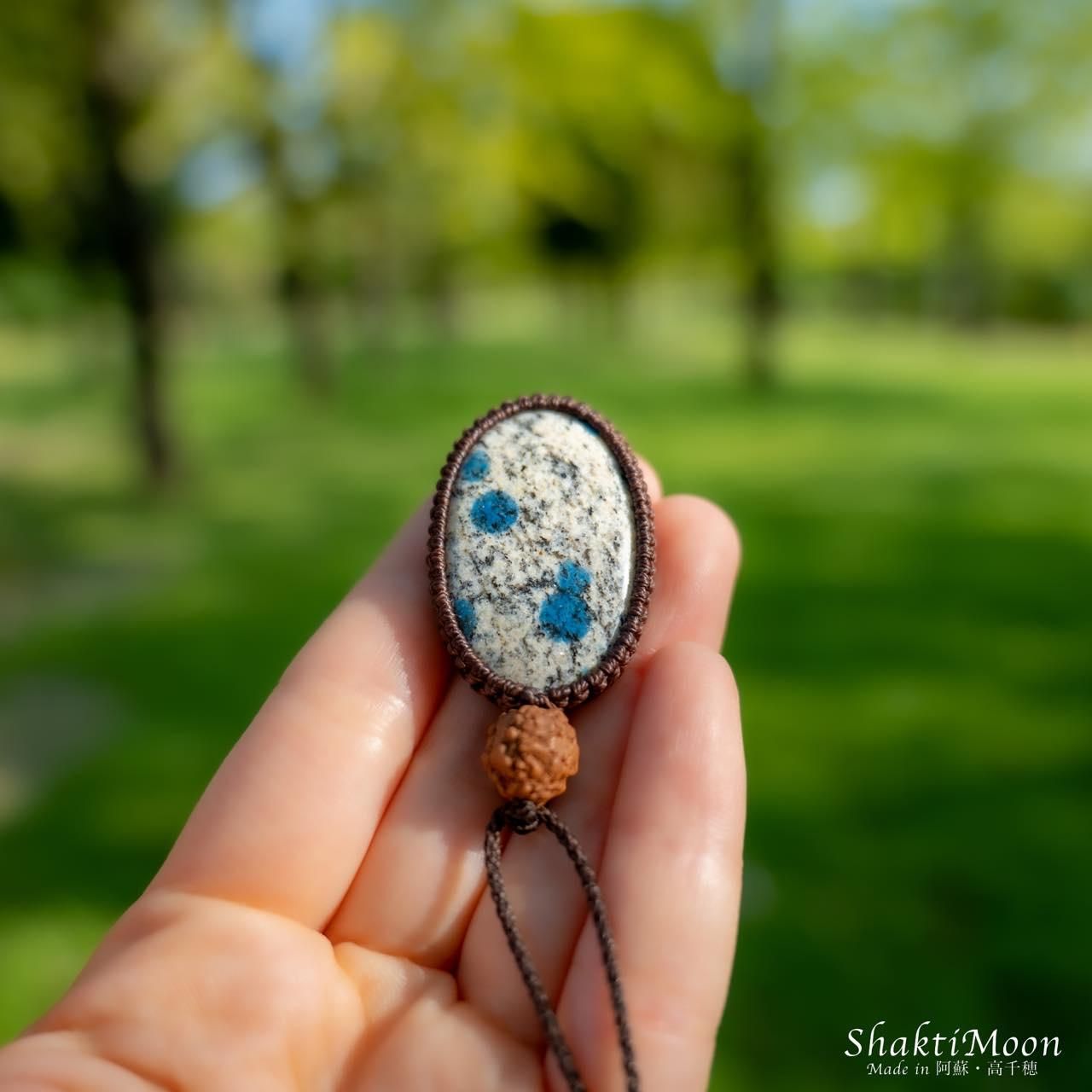 レイキ・シンギングボウルヒーラーでもあるオーナーが、悠久の大自然に囲まれたパワースポットとしても名高い神々の棲まう聖なる地-阿蘇・高千穂にて、ひとつひとつ心を込めて丁寧に結んだマクラメネックレス・ペンダントです。