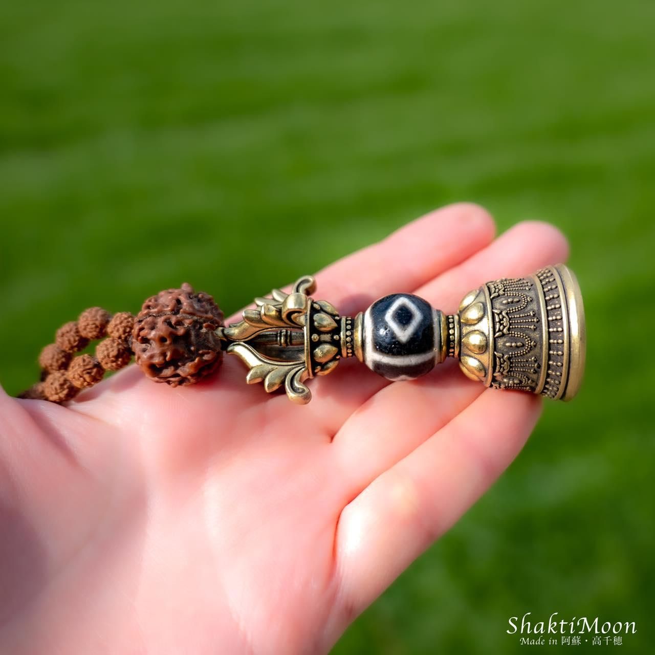 マーラー部分には高品質ルドラクシャを使い、グルビーズ(親玉)には貴重なネパール産特大ルドラクシャを組み合わせました☆