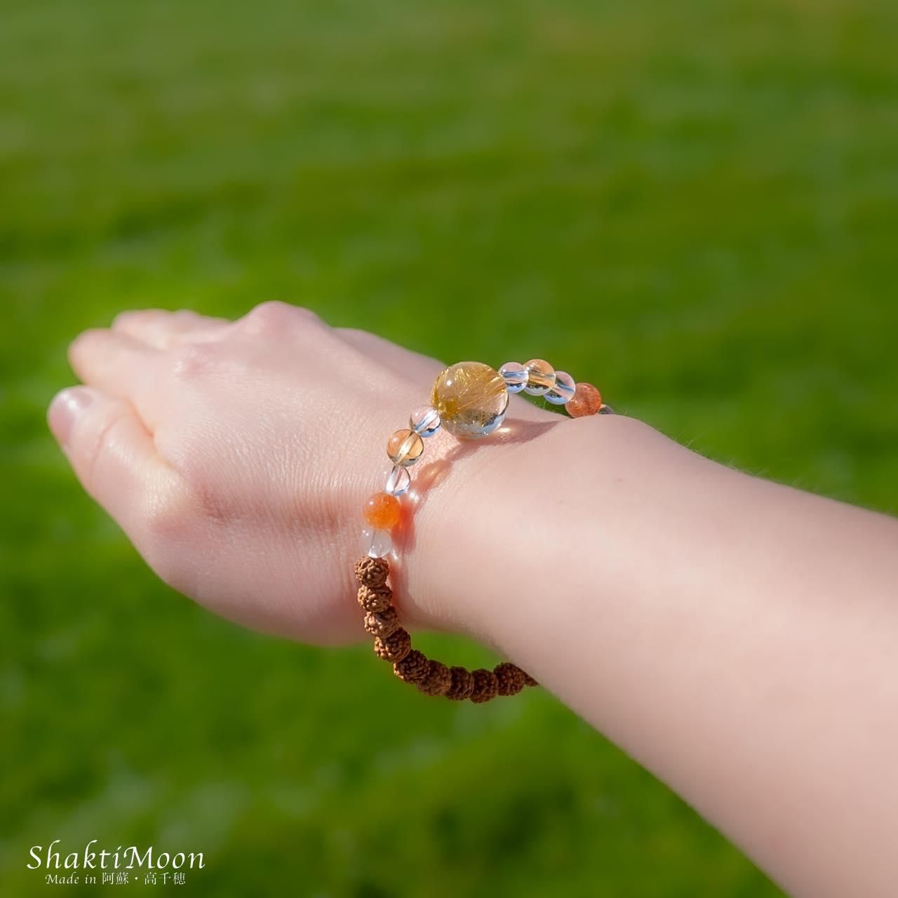 存在感抜群!13mmUPの大粒タイチンルチルクォーツ×極上サンストーン×シトリン×高品質水晶と