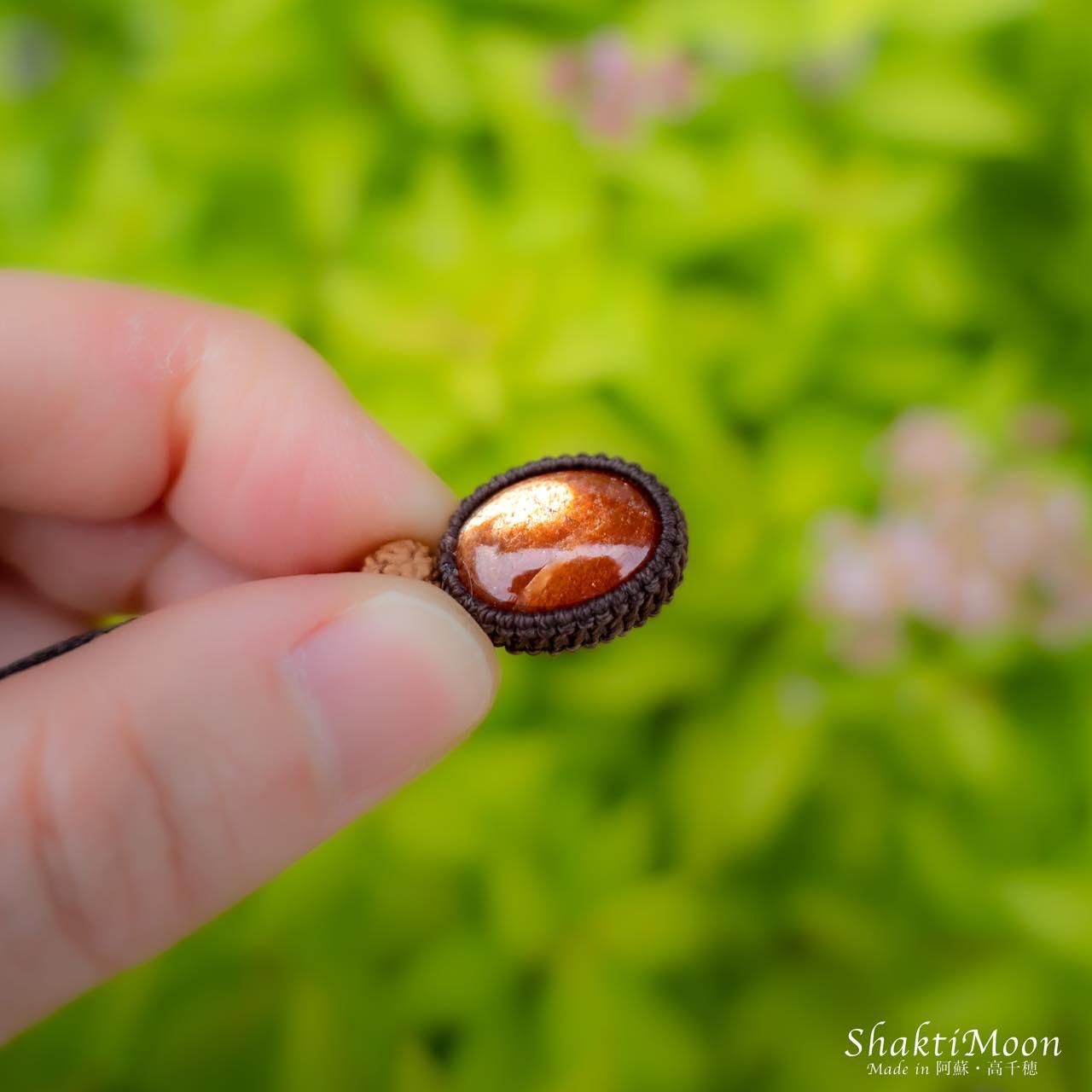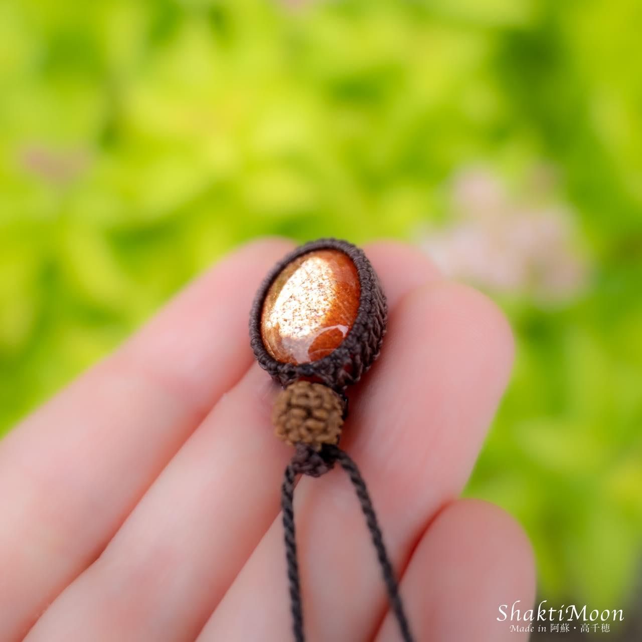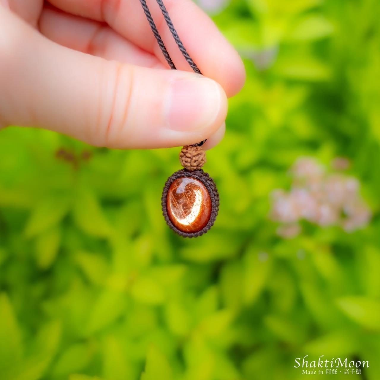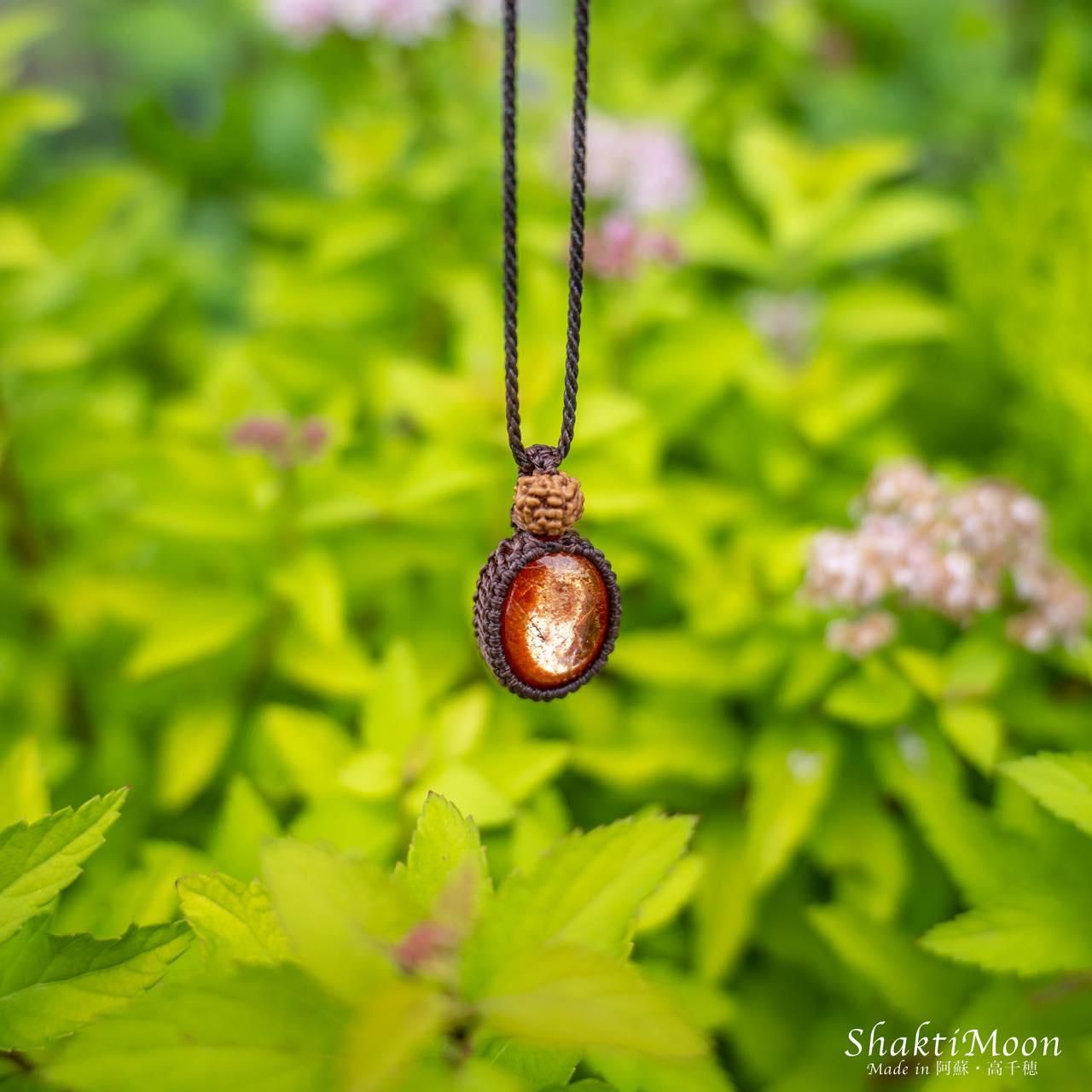 【鏡面の輝き!自信を持ち前向きに人生を歩みたい方へ!キラキラ極上サンストーンとルドラクシャのお守りマクラメネックレス・チョカー】第2チャクラ対応