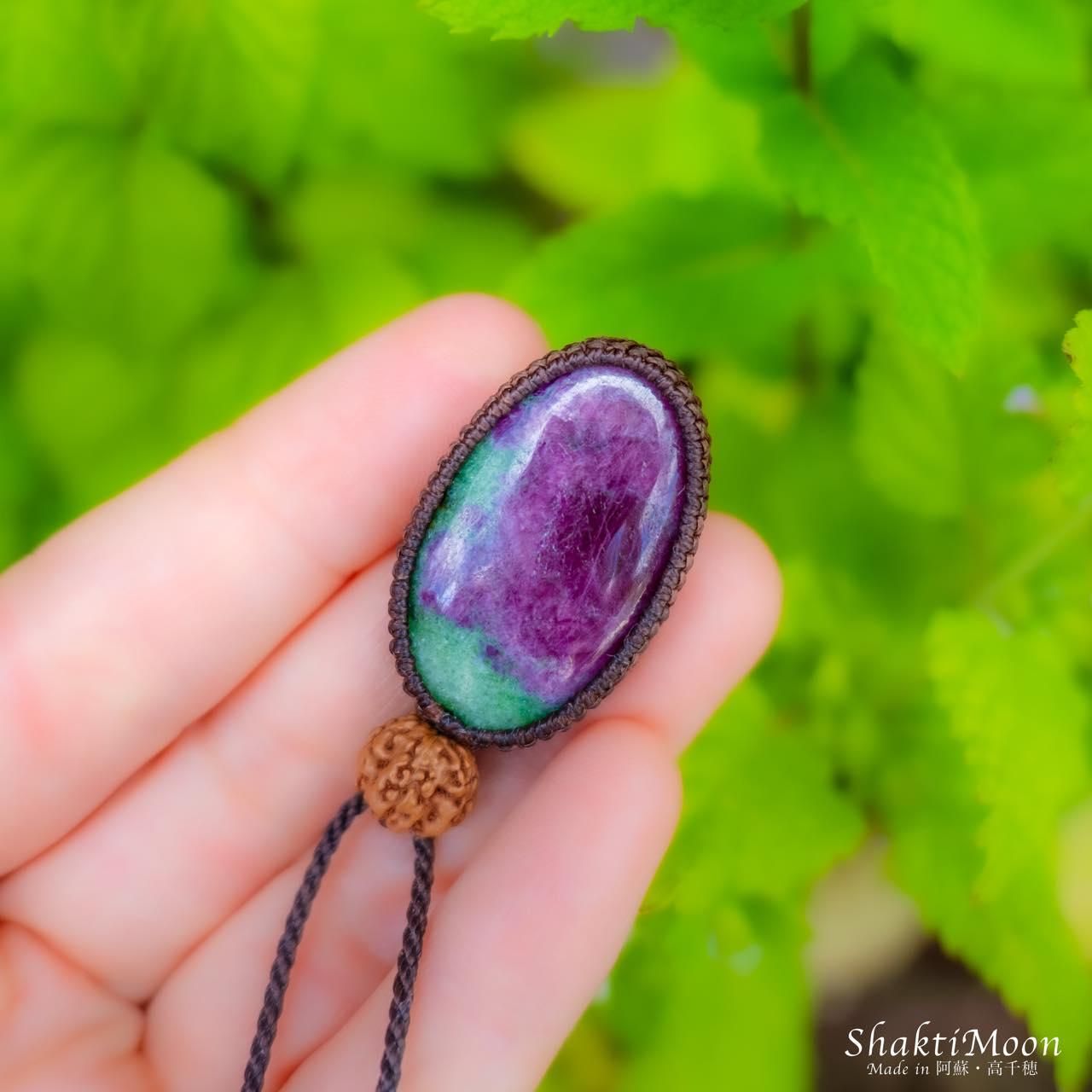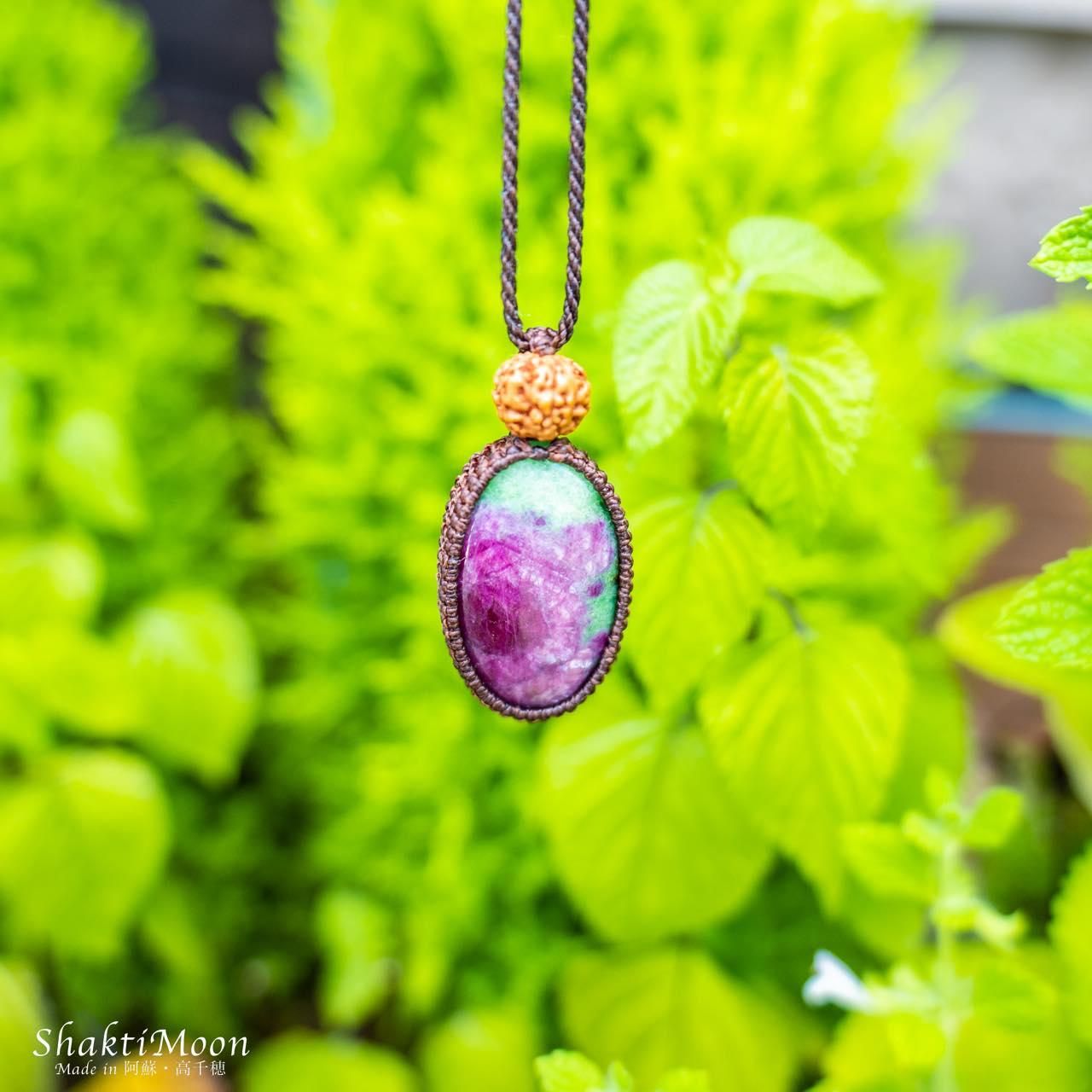 ルビーインゾイサイトはその名の通り、緑色のゾイサイトにルビーが内包された天然石ですが、