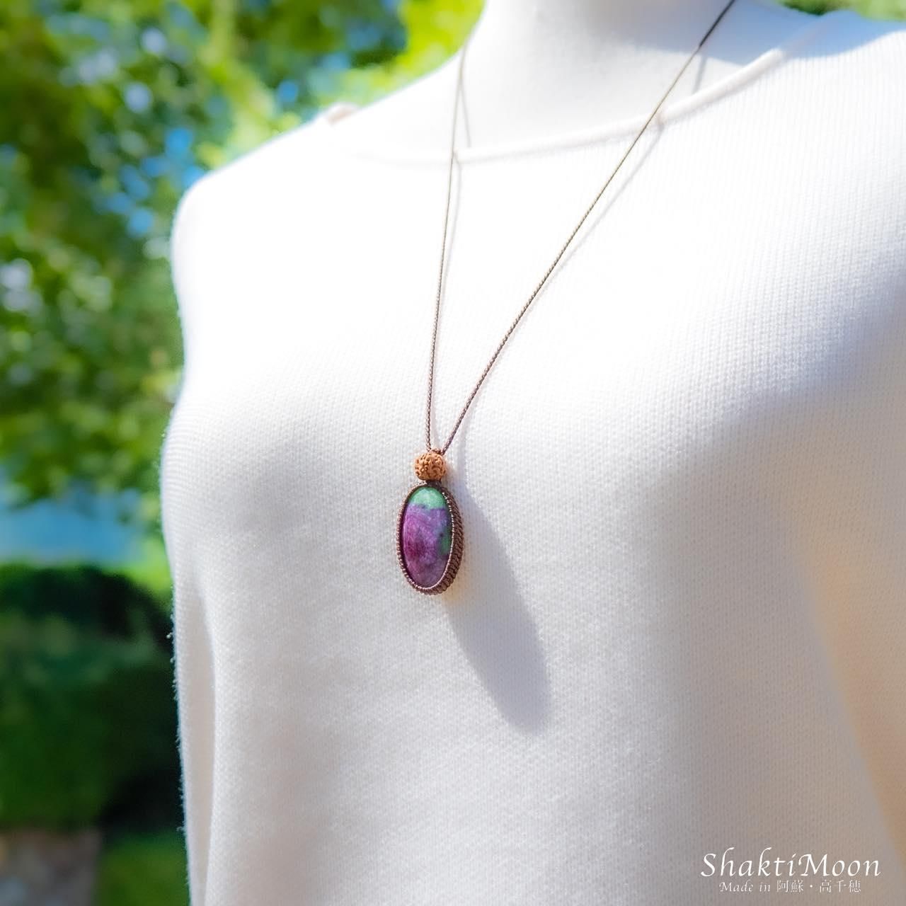 レイキ・シンギングボウルヒーラーでもあるオーナーが、悠久の大自然に囲まれたパワースポットとしても名高い神々の棲まう聖なる地-阿蘇・高千穂にて、ひとつひとつ心を込めて丁寧に結んだマクラメネックレス・ペンダントです。