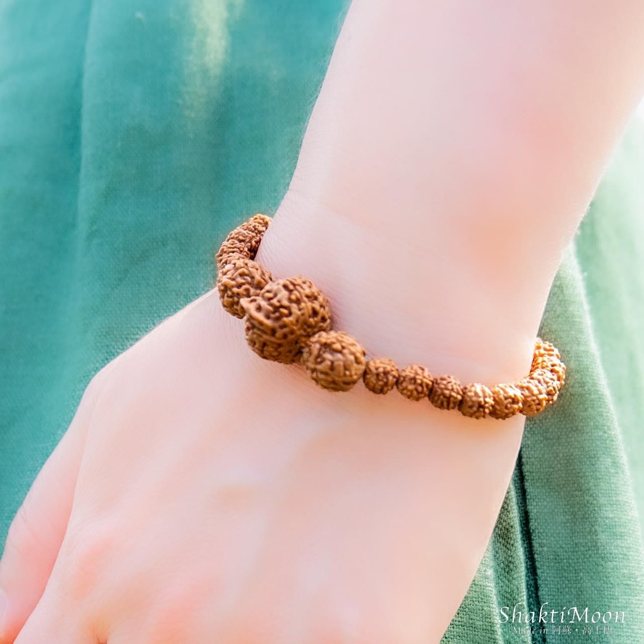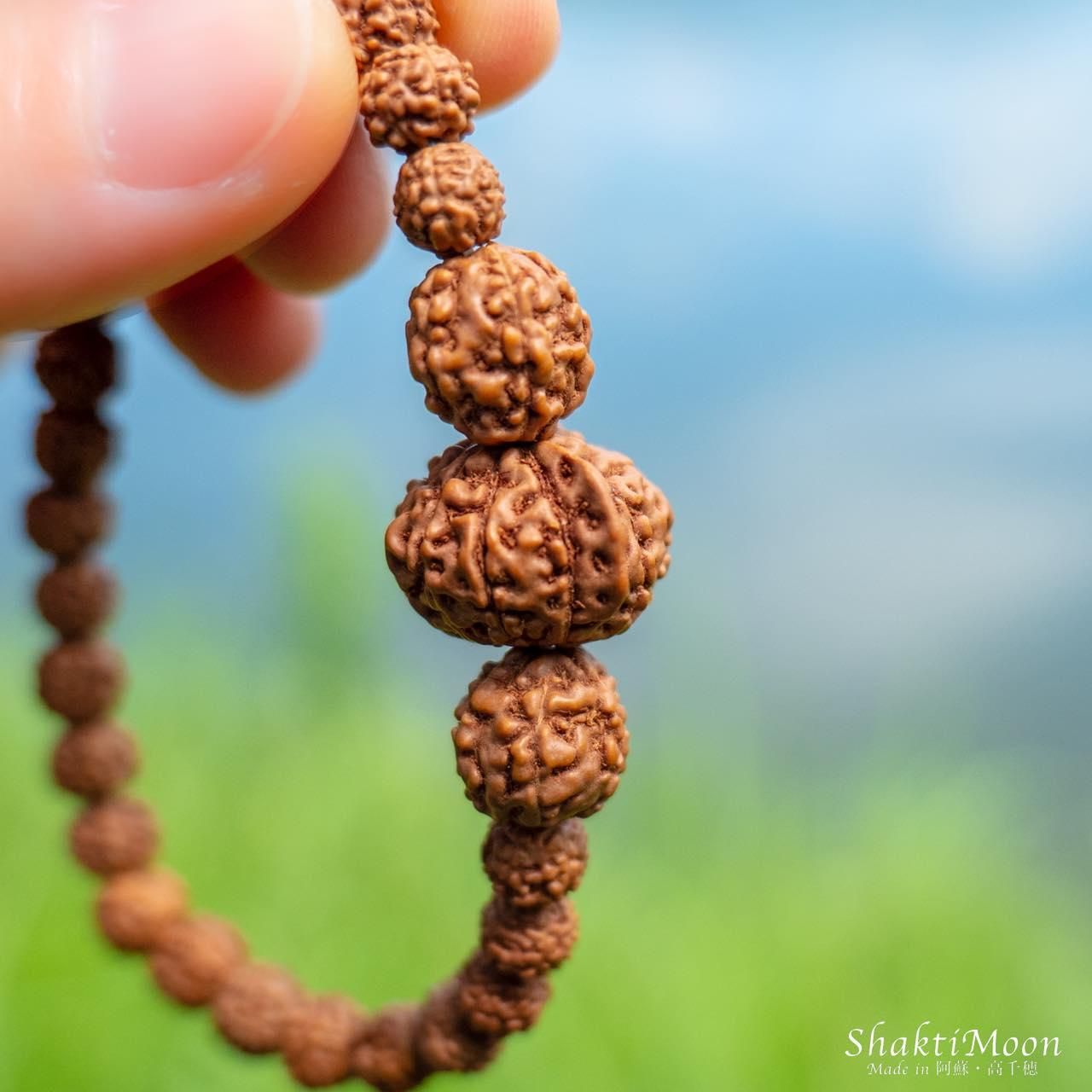 また、ルドラクシャ(菩提樹の実)は天然の木の実のため、形状やサイズに多少のばらつきがございます。