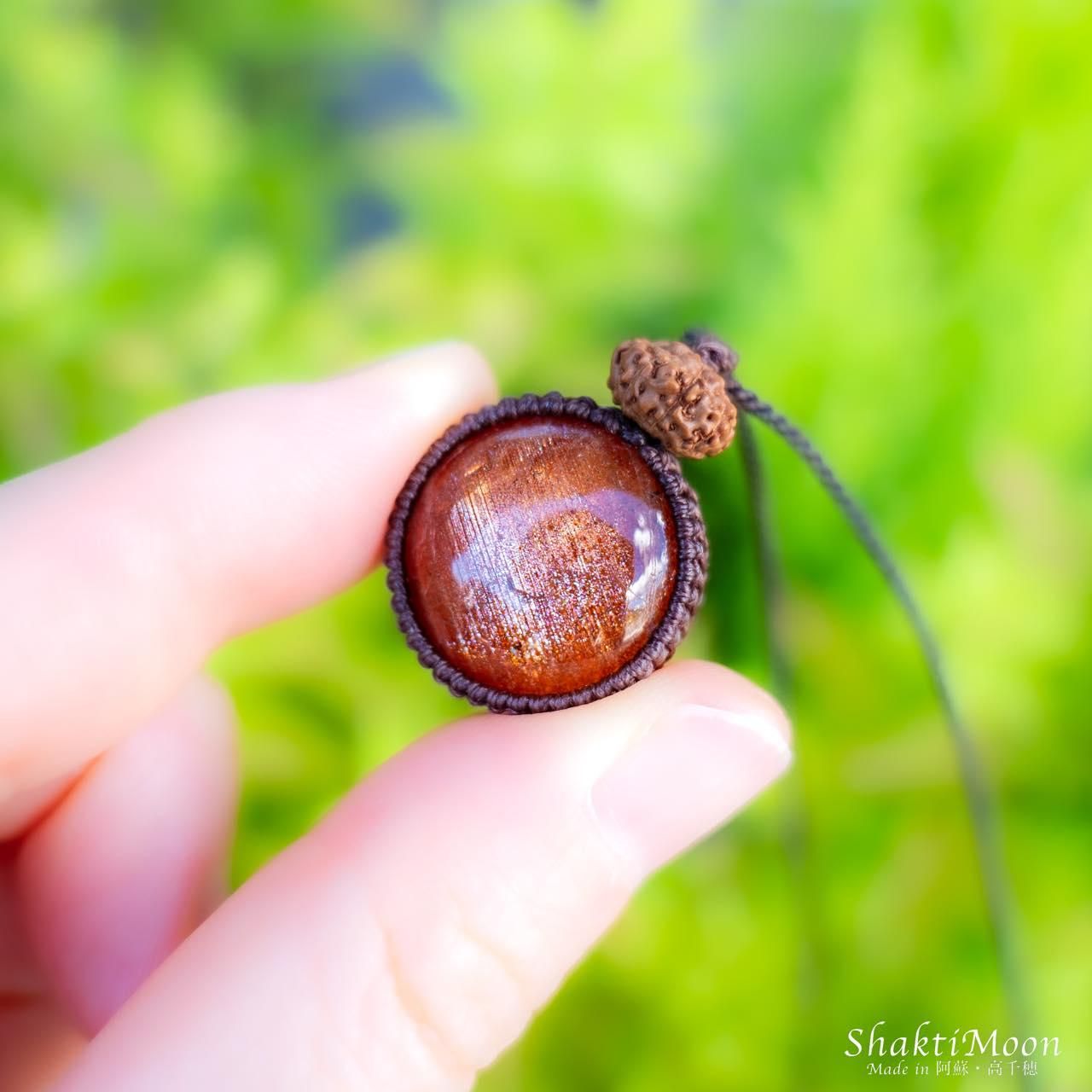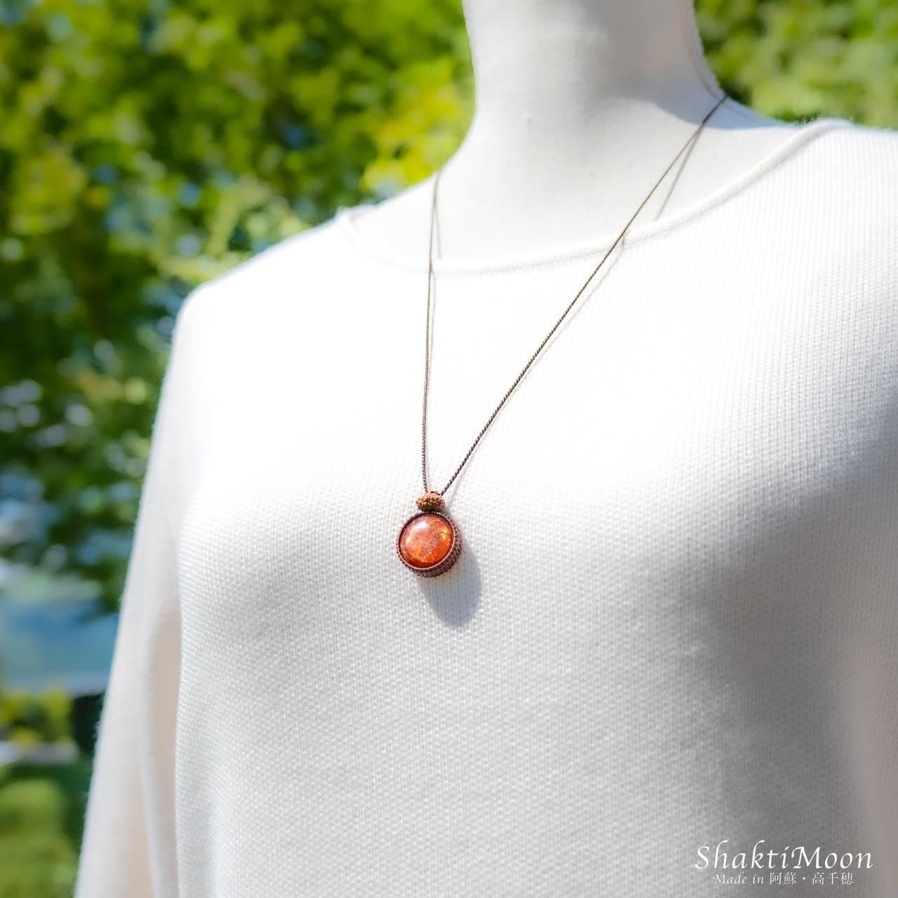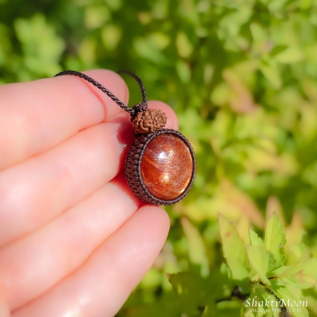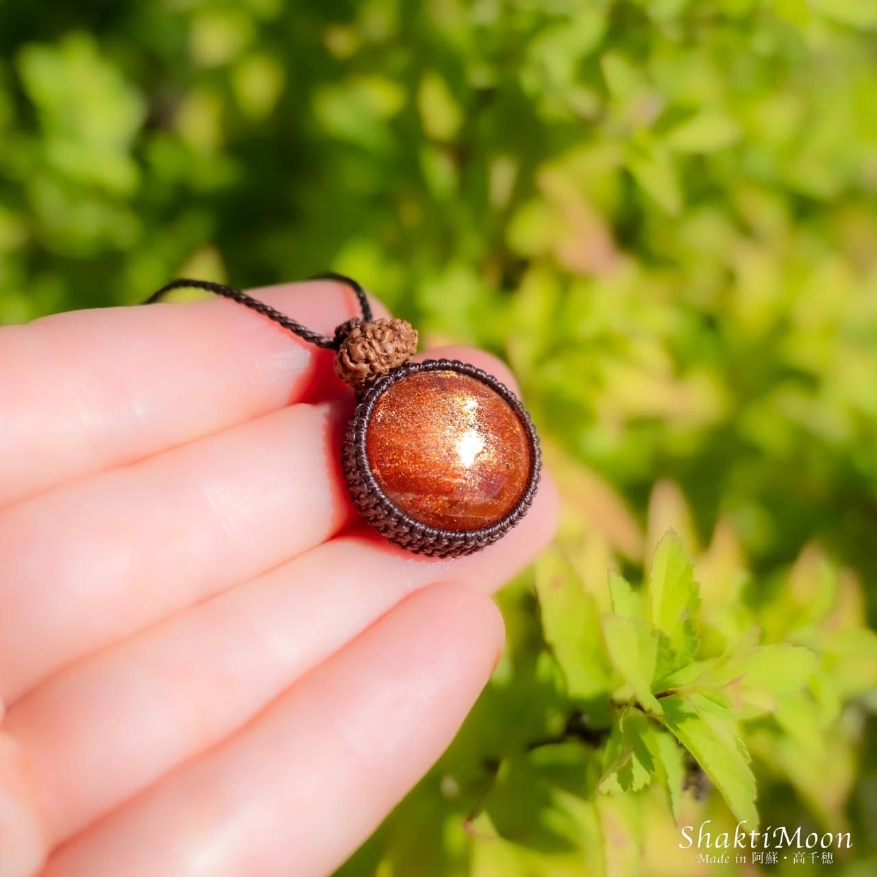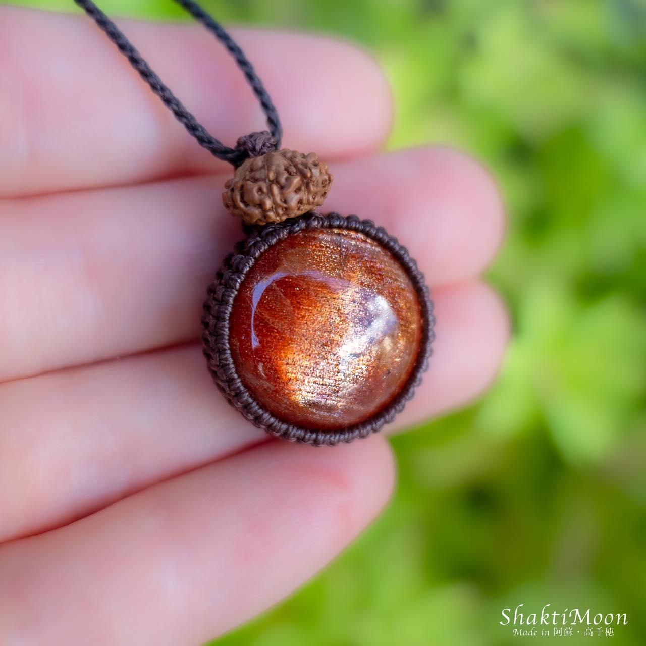【レア・希少!鏡面の輝き!大粒!9面!自信を持ち前向きに人生を歩みたい方へ!キラキラ極上サンストーンと9面ルドラクシャのお守りマクラメネックレス・チョカー14】第2チャクラ対応