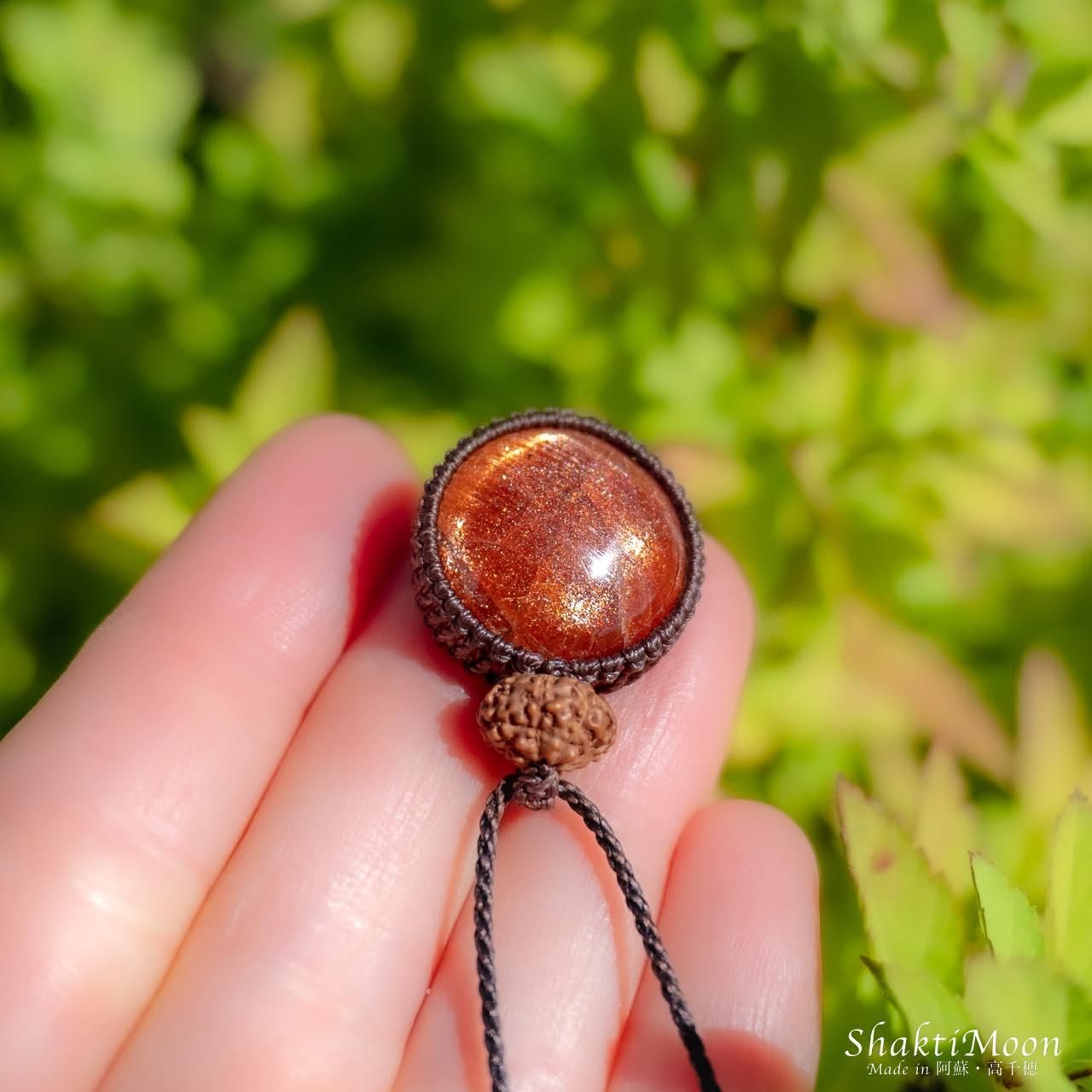 サンストーンの上にとってもレアで貴重な9面ルドラクシャをひと粒組み合わせました!