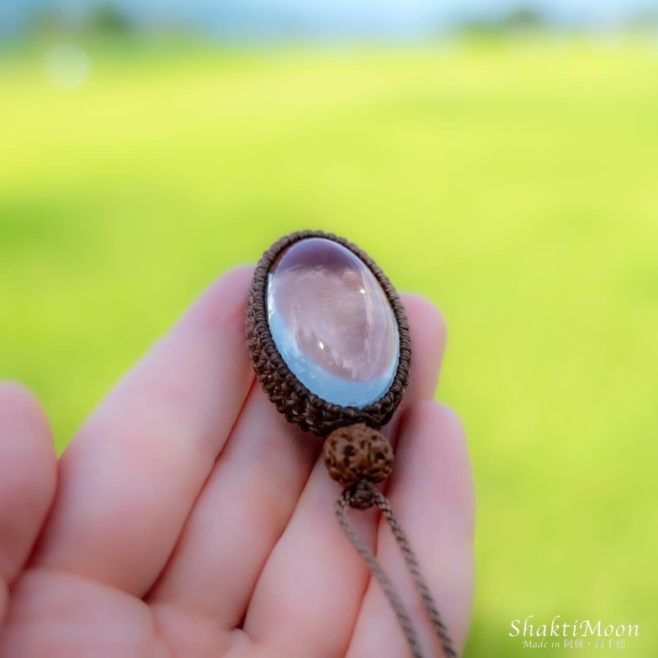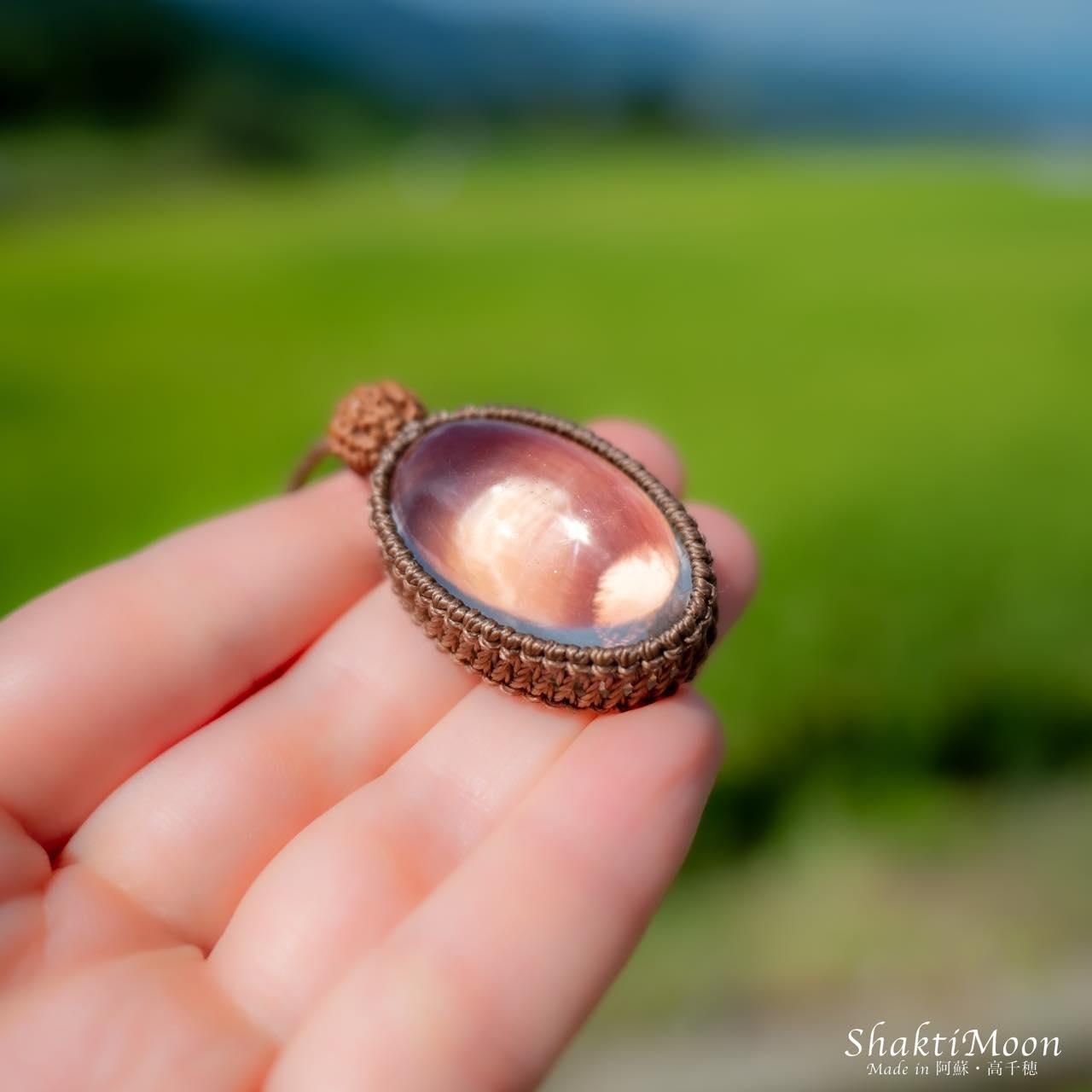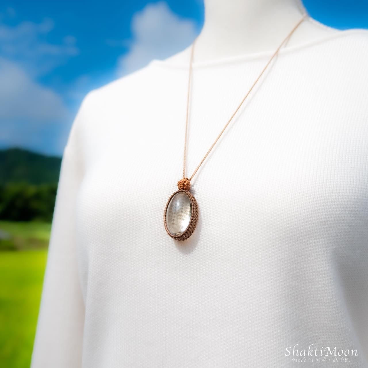 レイキ・シンギングボウルヒーラーでもあるオーナーが、悠久の大自然に囲まれたパワースポットとしても名高い神々の棲まう聖なる地-阿蘇・高千穂にて、ひとつひとつ心を込めて丁寧に結んだマクラメネックレス・ペンダントです。