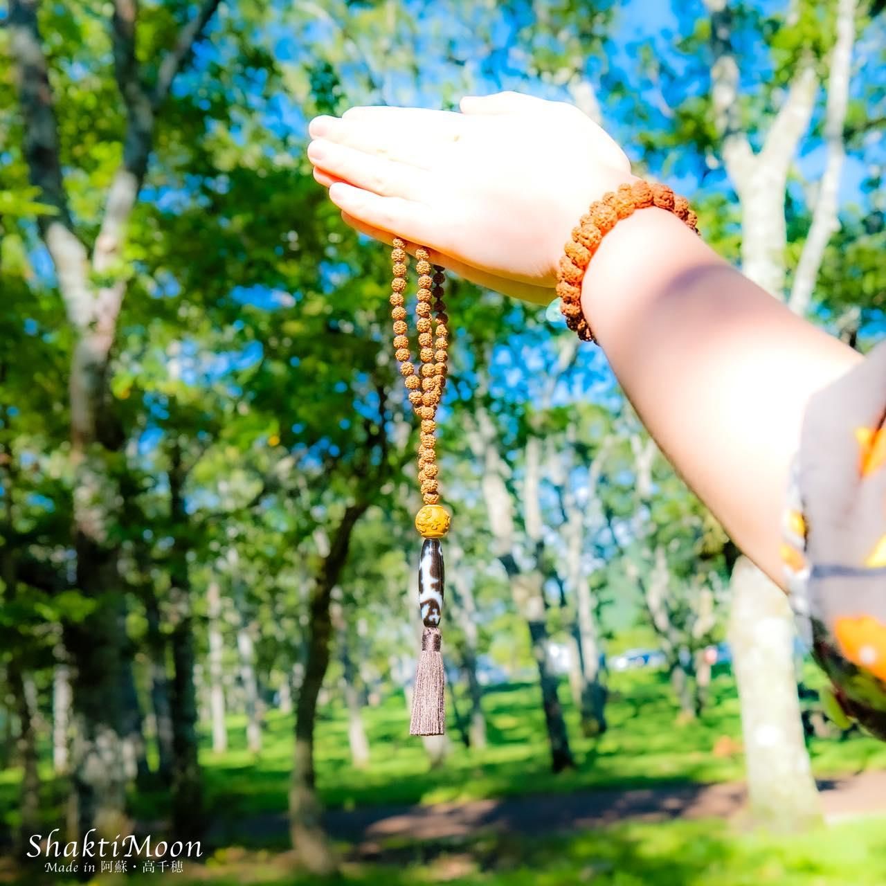 すべてが手作りで結びを大切にしているため時間と手間がかかり大量生産には向きませんが、ヒーリングや瞑想のお供として、大切なお守りとして身につけて頂きたい世界に一つだけの手作りお守りルドラクシャマーラー(108粒の数珠)です。