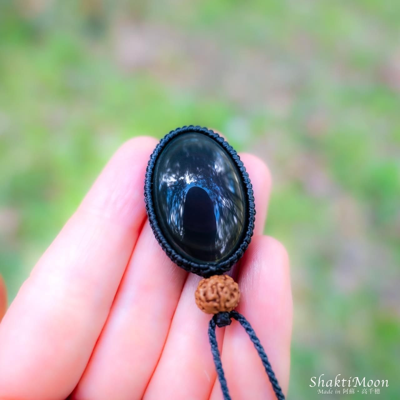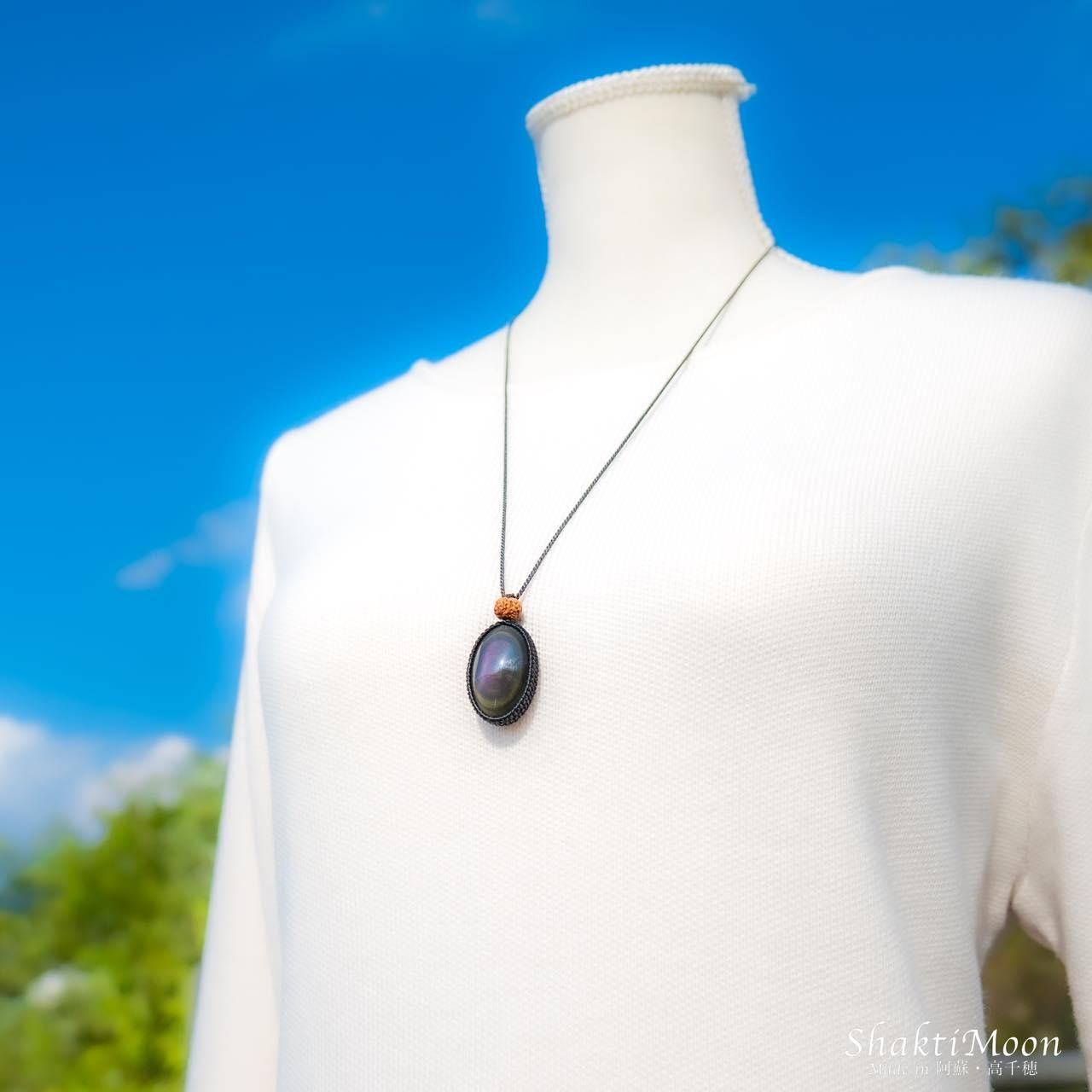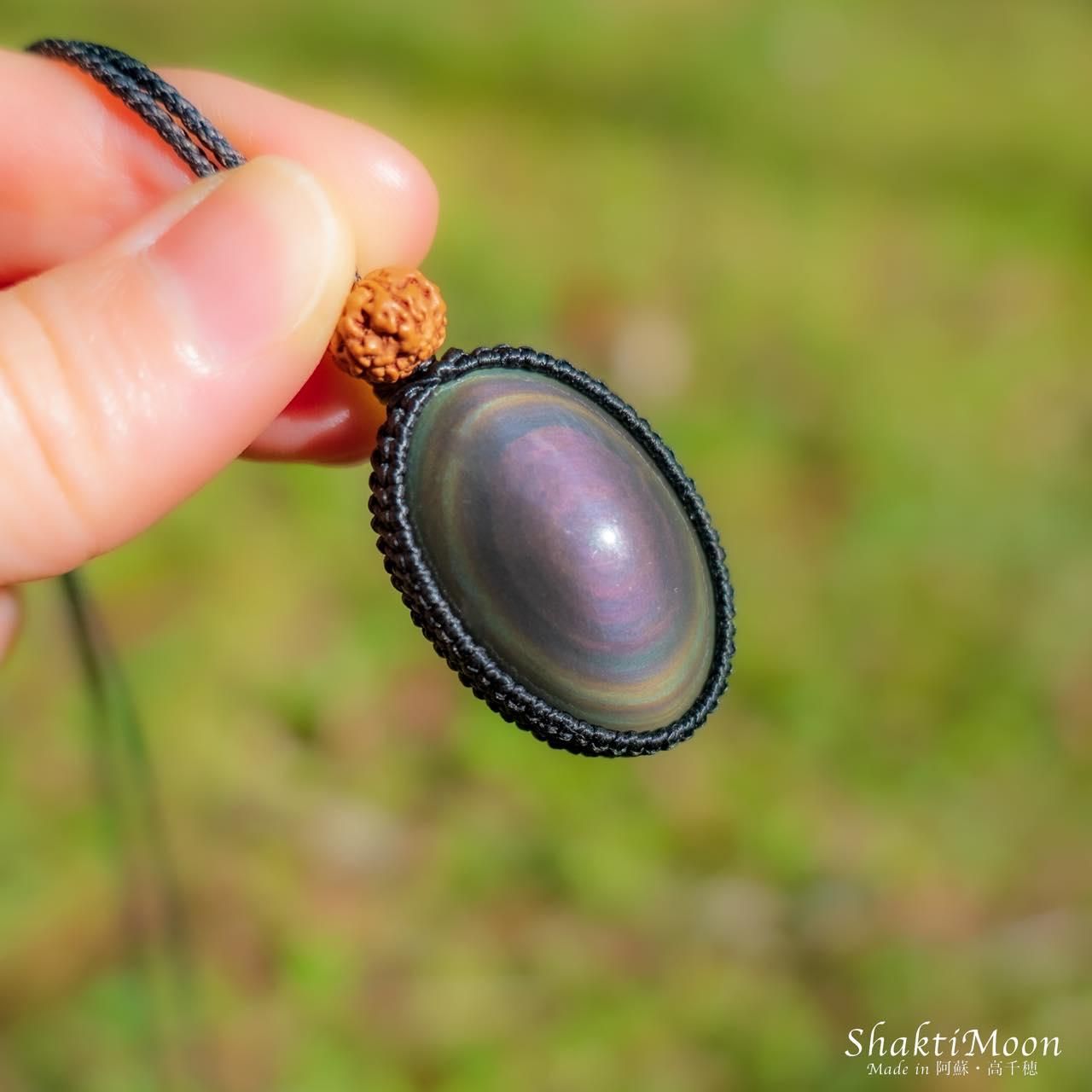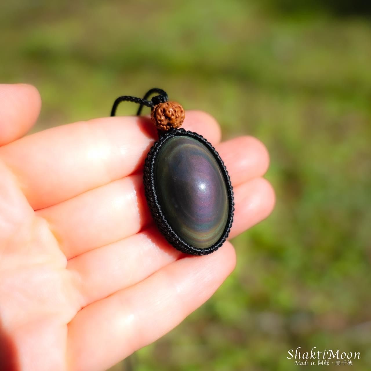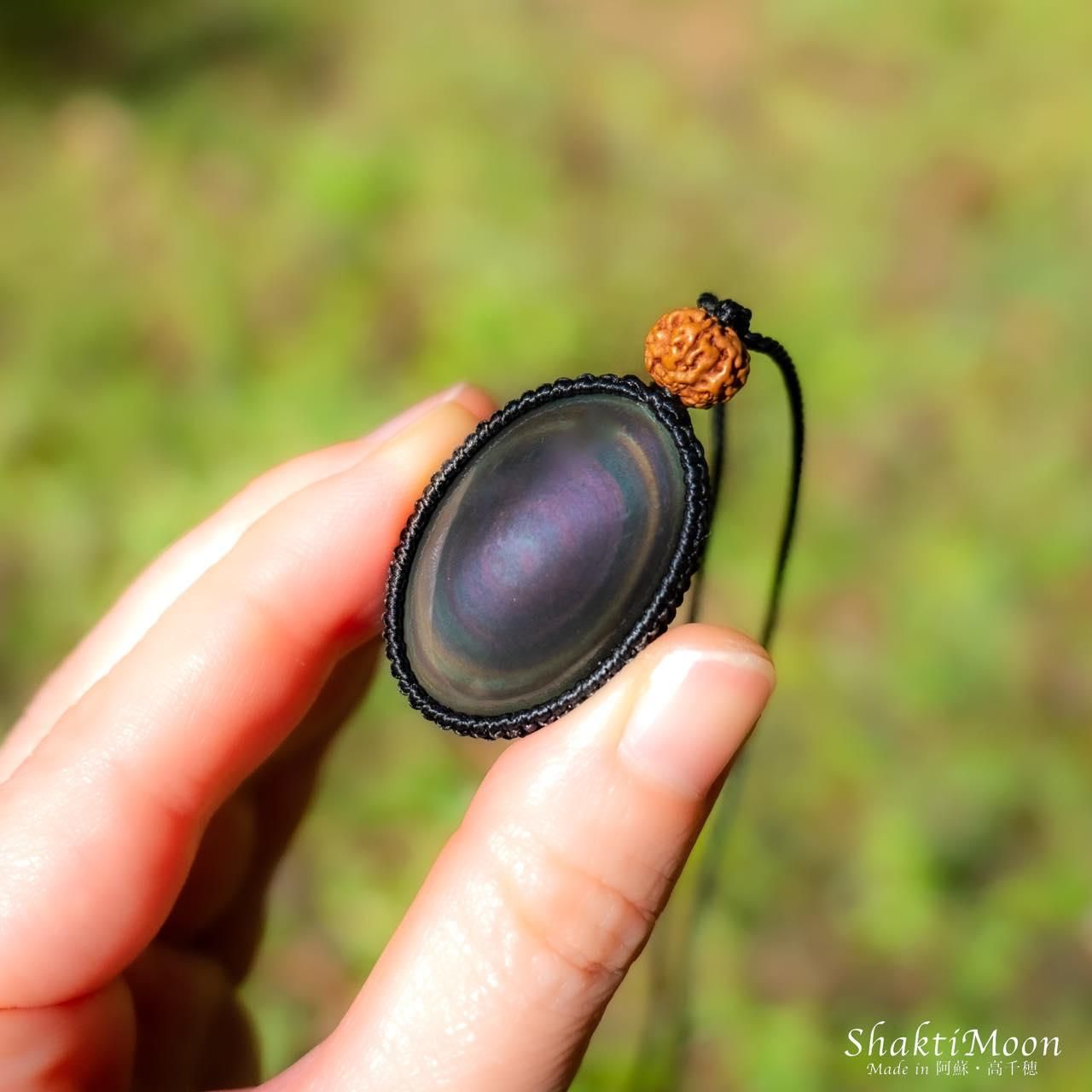 【強力な魔除け!決断力を高めたいあなたへ!レインボーオブシディアンとルドラクシャのお守りネックレス3】天然石マクラメペンダント 第1チャクラ対応
