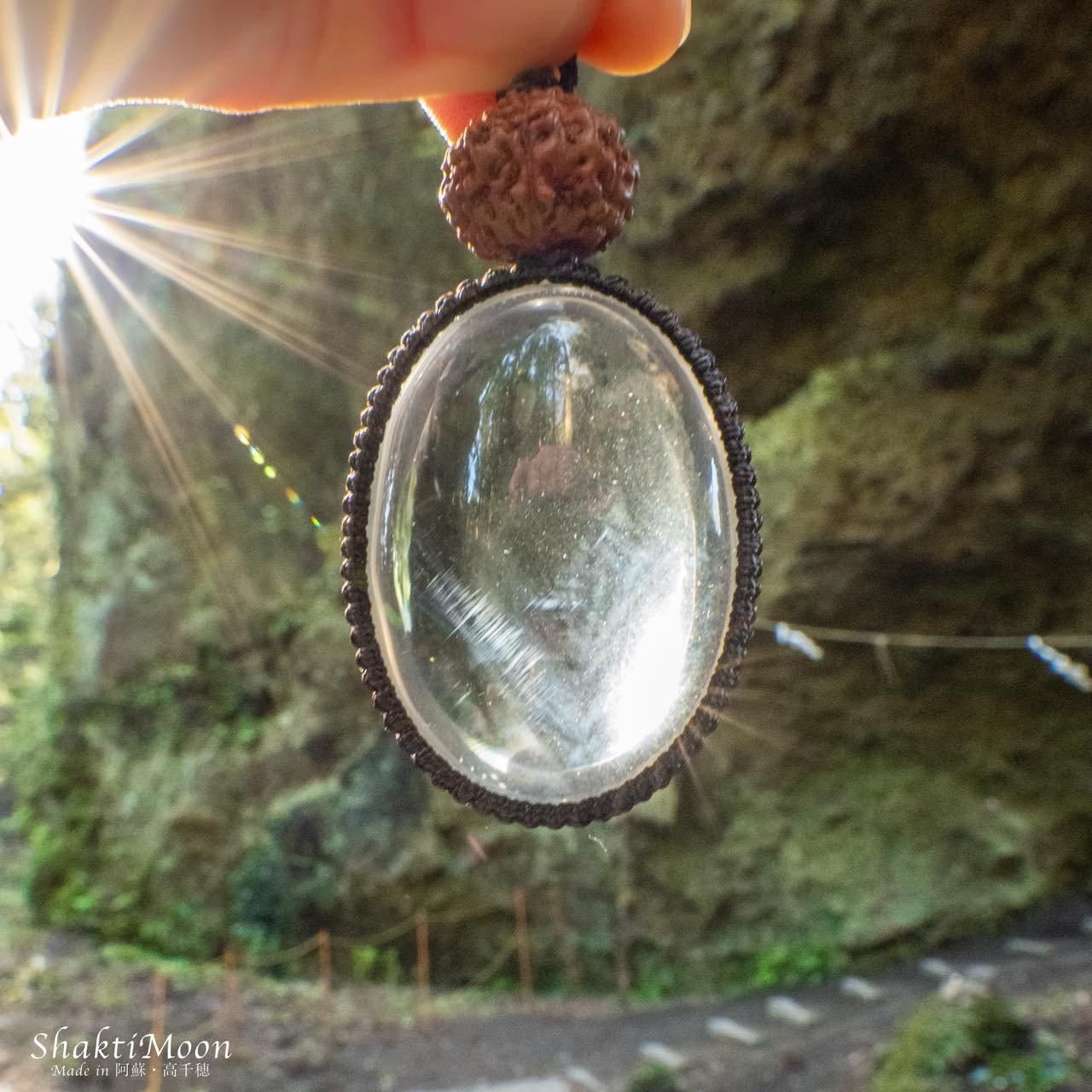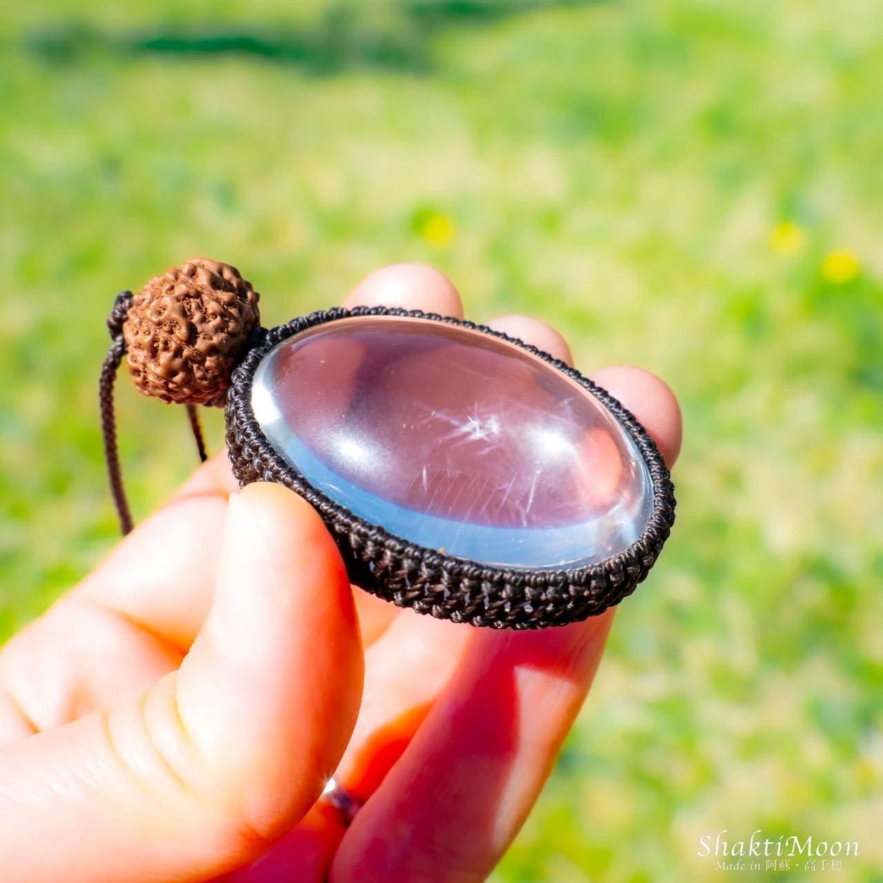 エンジェルラダークォーツの上に8面ルドラクシャをひと粒組み合わせ、