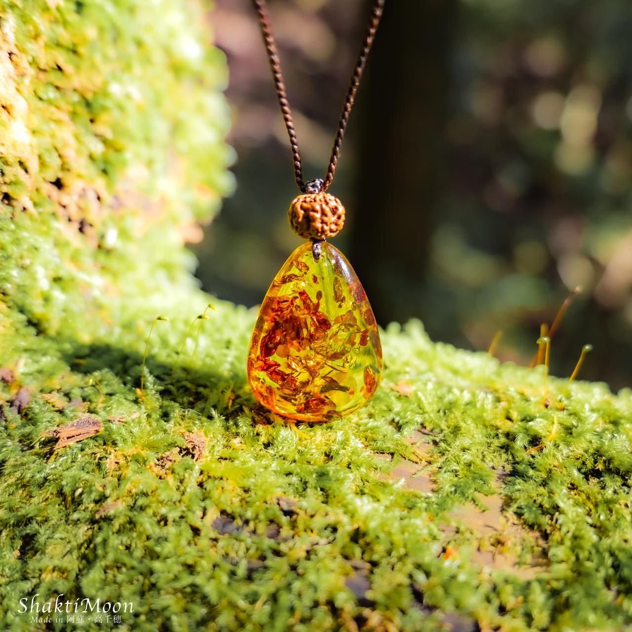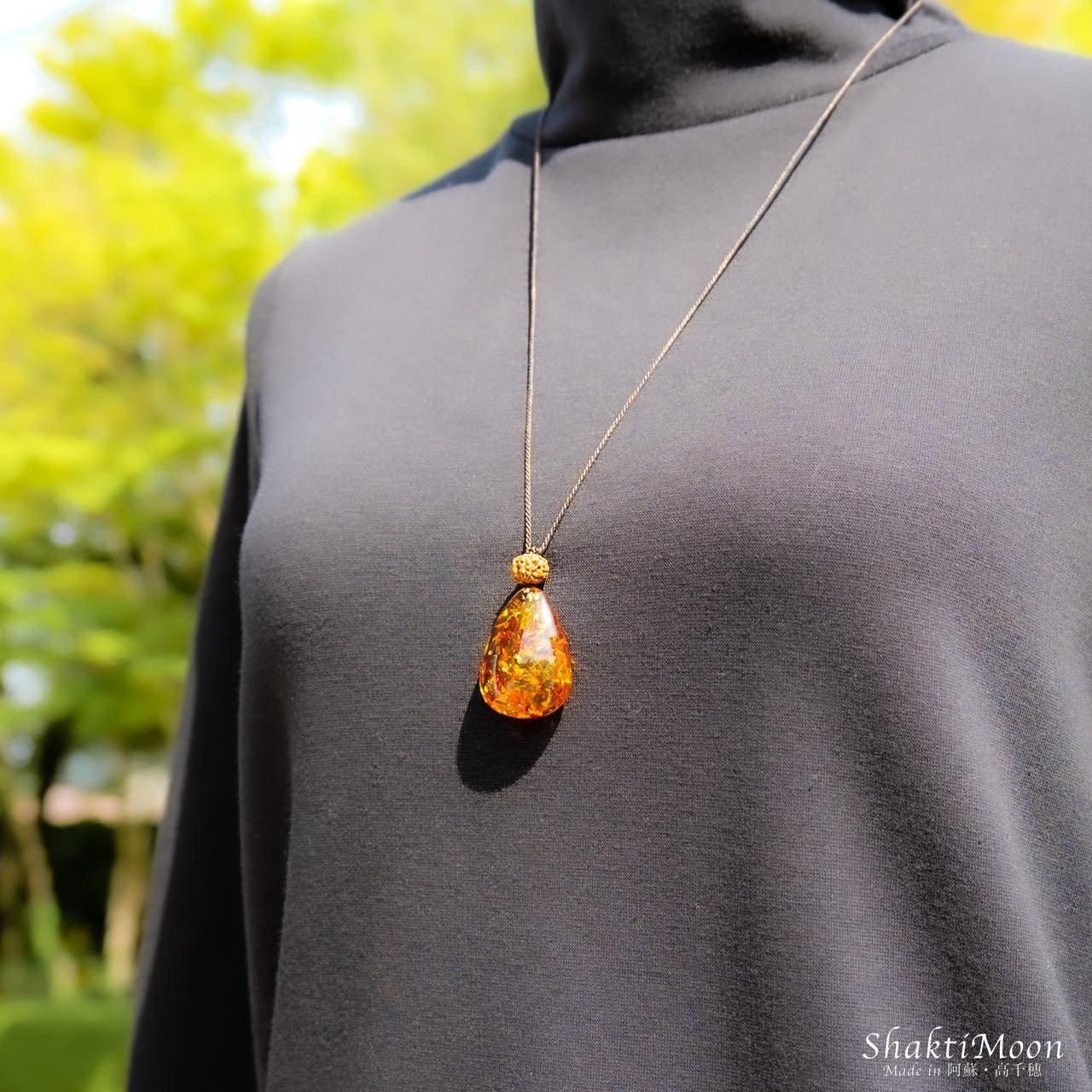 「太陽のしずく」と呼ばれるほど明るさと落ち着きを持つとされるアンバーは、古代の松や杉などの松柏類の天然樹脂が化石化した有機物で、古代より世界中で装飾品や護符として用いられてきました。