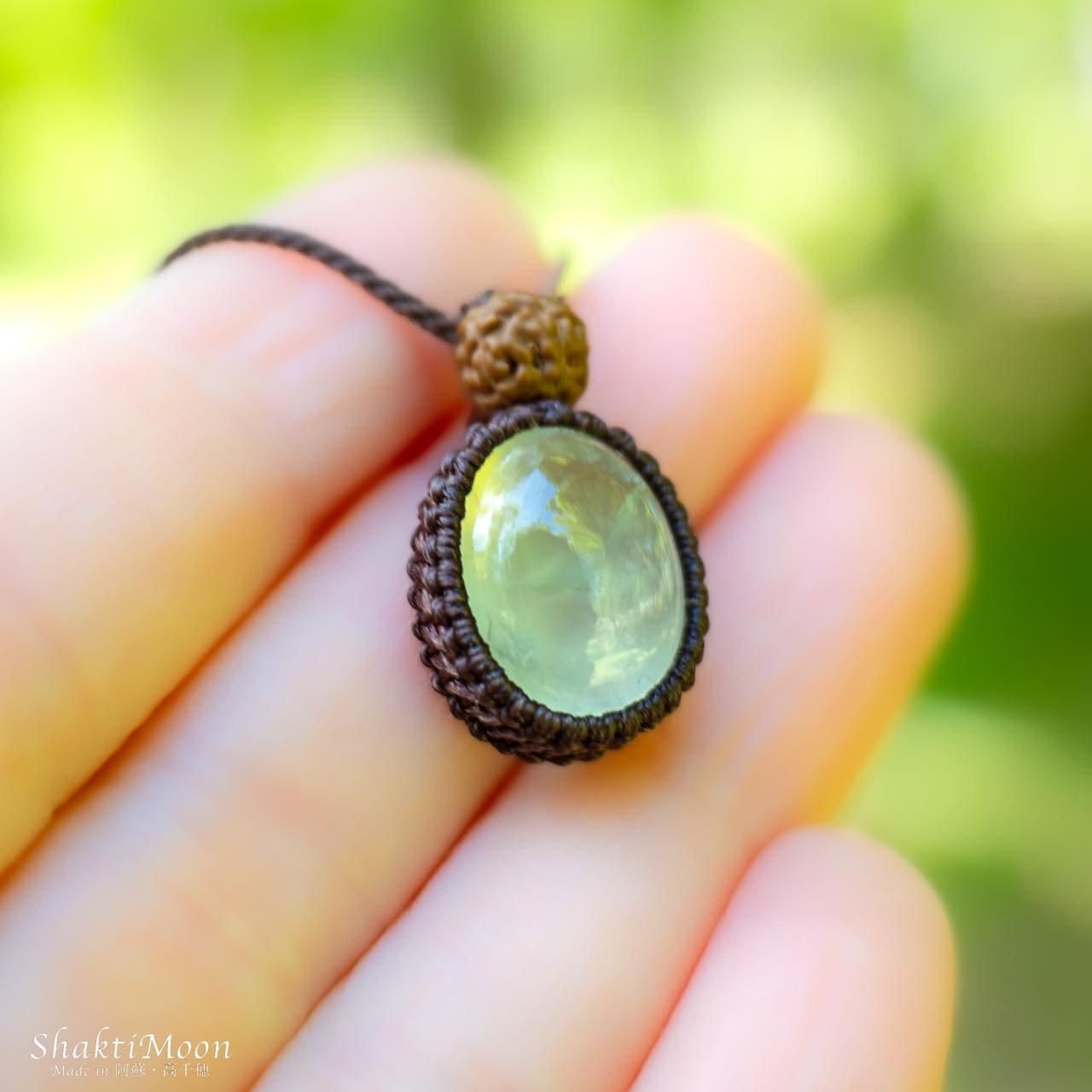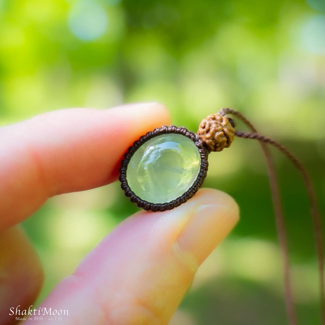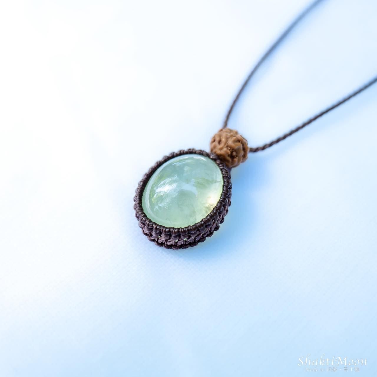 【自分にとって必要のないものを手放したいあなたへ!(断捨離のお守り!)ぷっくり可愛いプレナイト(葡萄石)とルドラクシャのお守りネックレス・チョーカー9】天然石マクラメネックレス 第4チャクラ対応