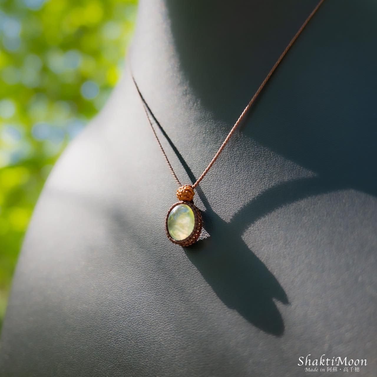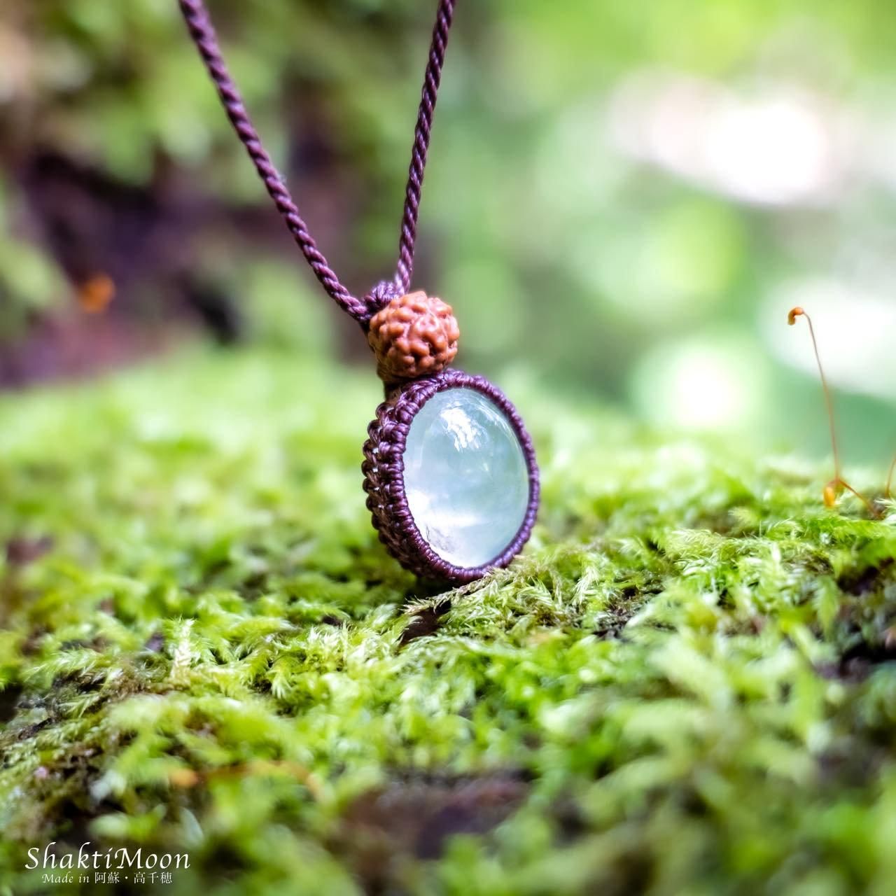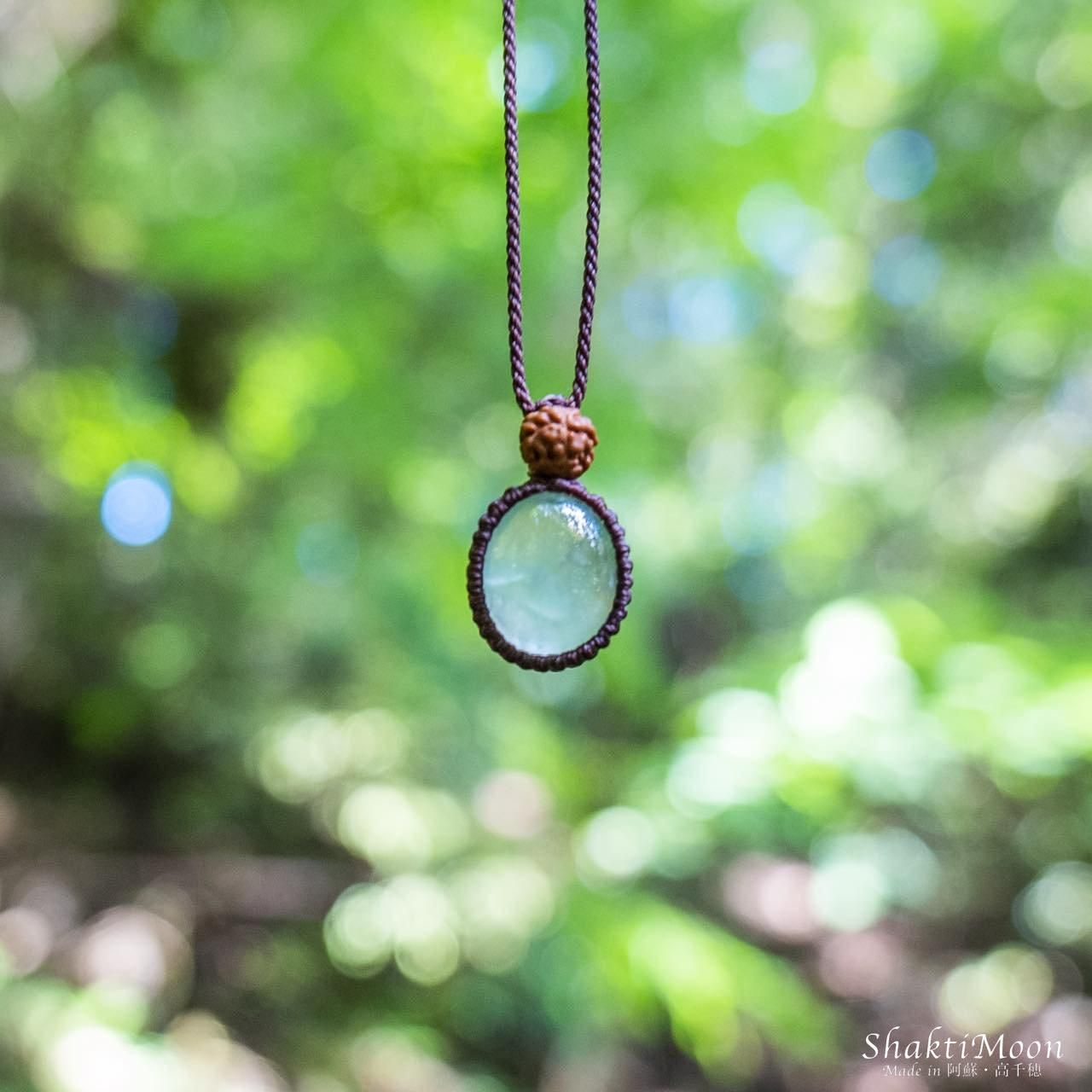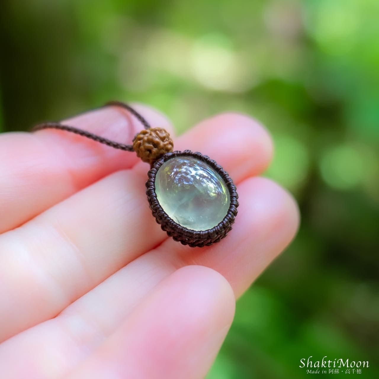 【自分にとって必要のないものを手放したいあなたへ!(断捨離のお守り!)ぷっくり可愛いプレナイト(葡萄石)とルドラクシャのお守りネックレス・チョーカー9】天然石マクラメネックレス 第4チャクラ対応