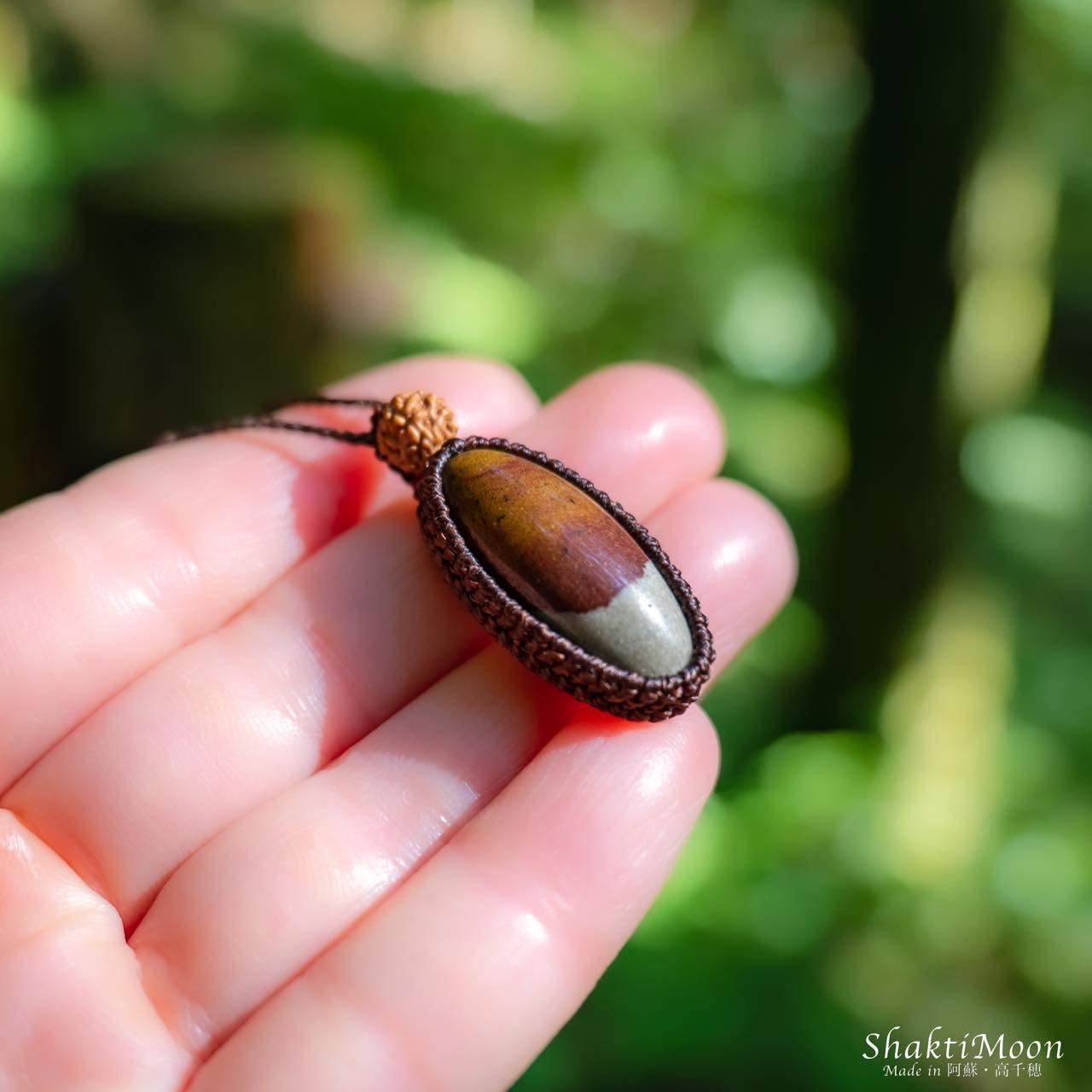 レイキ・シンギングボウルヒーラーでもあるオーナーが、悠久の大自然に囲まれたパワースポットとしても名高い神々の棲まう聖なる地-阿蘇・高千穂にて、ひとつひとつ心を込めて丁寧に結んだマクラメネックレス・ペンダントです。
