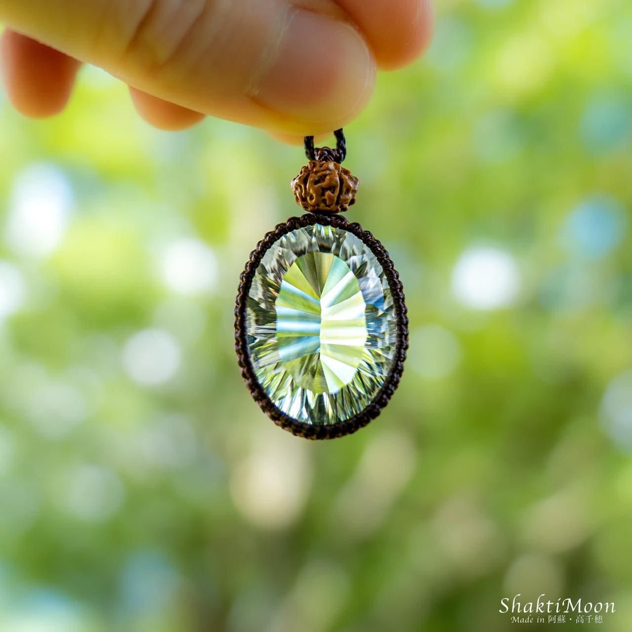 カット水晶の上にルドラクシャをひと粒組み合わせ、後ろからも持ち主様をお守りしてくれるように紐のエンド部分に2粒ずつルドラクシャをお付けいたしました!