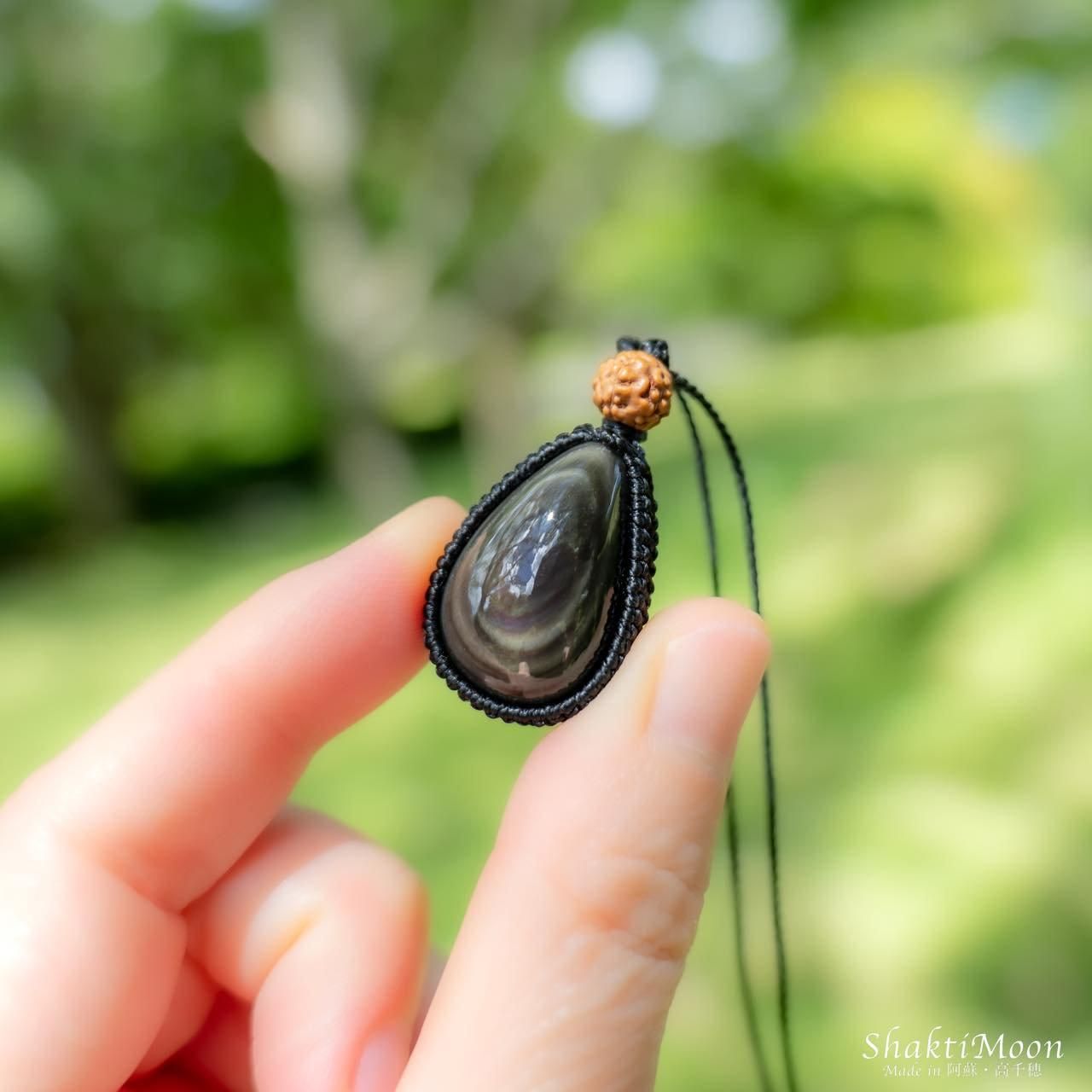 【強力な魔除け!決断力を高めたいあなたへ!レインボーオブシディアンとルドラクシャのお守りネックレス6】天然石マクラメペンダント 第1チャクラ対応