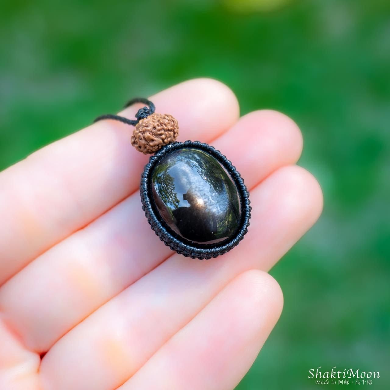 ブラックスターサンストーンの上にとってもレアで貴重な8面ルドラクシャをひと粒組み合わせました!