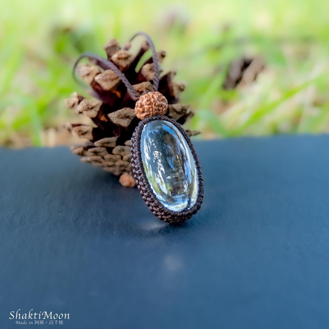 ヒマラヤ水晶リンガムの上にルドラクシャをひと粒組み合わせ、後ろからも持ち主様をお守りしてくれるように紐のエンド部分に2粒ずつルドラクシャをお付けいたしました!