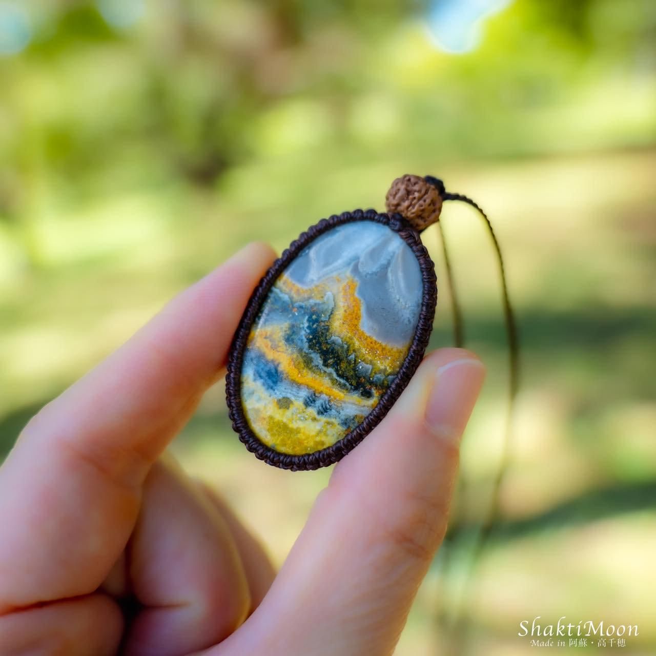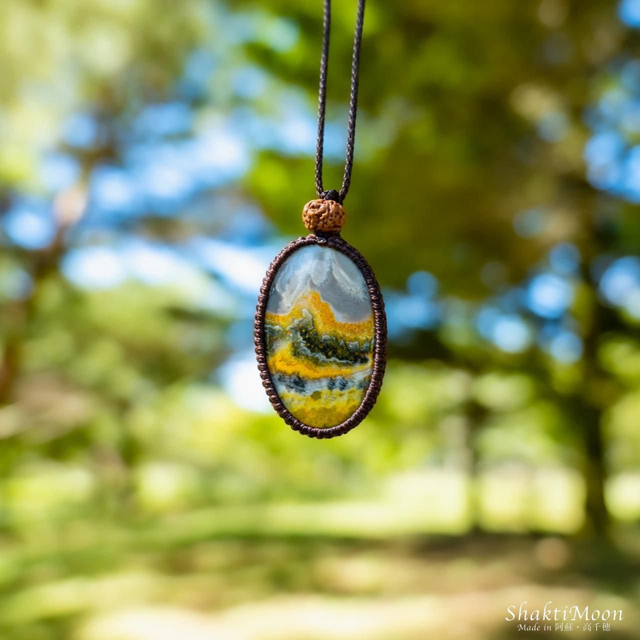 レイキ・シンギングボウルヒーラーでもあるオーナーが、悠久の大自然に囲まれたパワースポットとしても名高い神々の棲まう聖なる地-阿蘇・高千穂にて、ひとつひとつ心を込めて丁寧に結んだマクラメネックレス・ペンダントです。