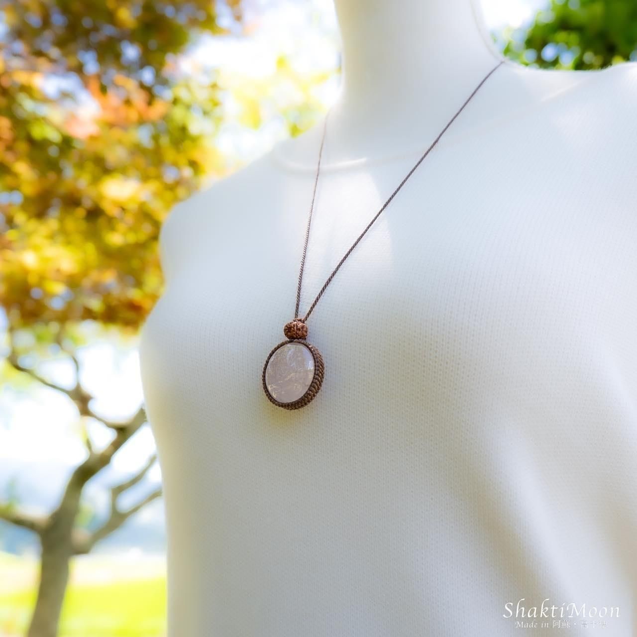 レイキ・シンギングボウルヒーラーでもあるオーナーが、悠久の大自然に囲まれた高次元のエネルギーに満ち溢れる-阿蘇・高千穂にて、ひとつひとつ心を込めて丁寧に結んだマクラメネックレス・ペンダントです。