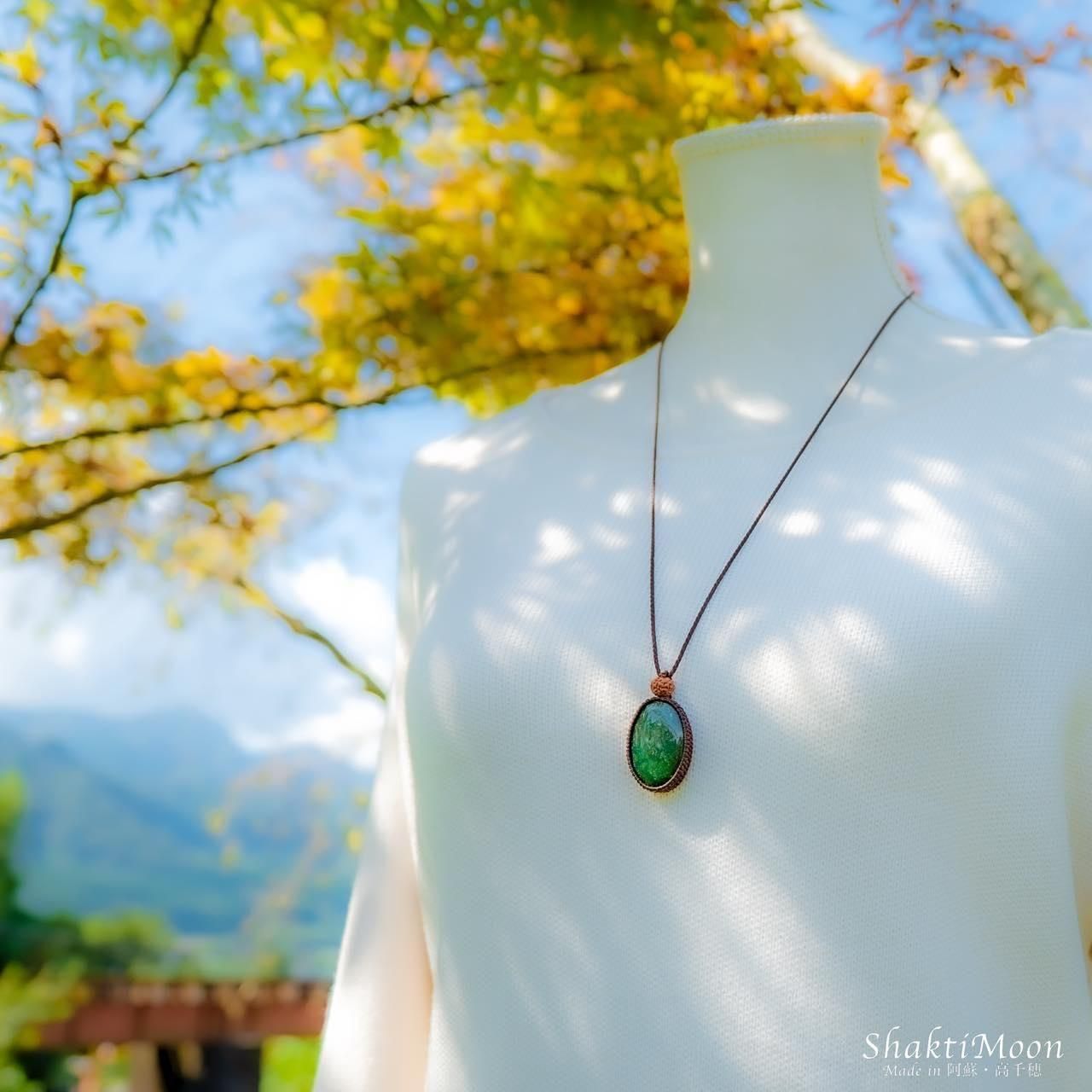 レイキ・シンギングボウルヒーラーでもあるオーナーが、悠久の大自然に囲まれたパワースポットとしても名高い神々の棲まう聖なる地-阿蘇・高千穂にて、ひとつひとつ心を込めて丁寧に結んだマクラメネックレス・ペンダントです。