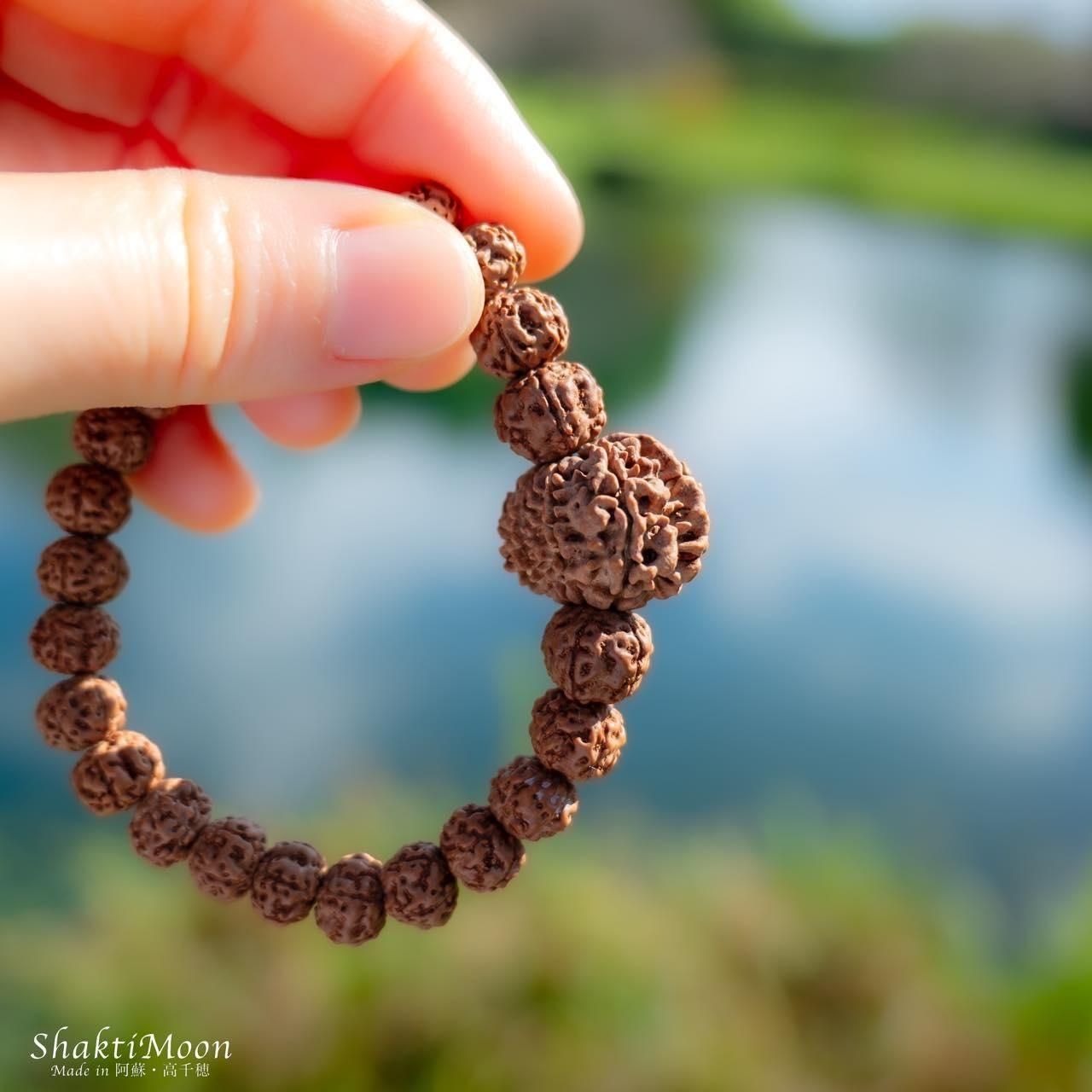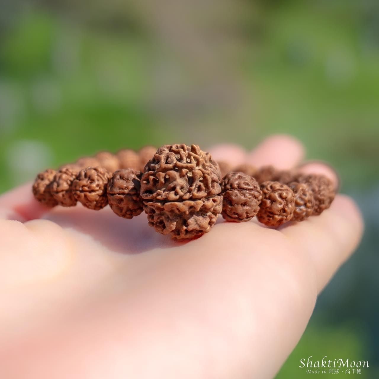 また、ルドラクシャ(菩提樹の実)は天然の木の実のため、形状やサイズに多少のばらつきがございます。